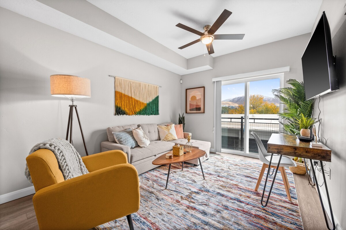 Enjoy a beautifully BOHO designed apartment located in the middle of Salt Lake City. The apartment is stocked with all of the essentials. Feel free to use the fully stocked kitchen and make a great homemade meal while looking at the stunning views from the balcony. The apartment is located near all of the cities top destination; Temple Square, University of Utah, Vivint Arena, Salt Palace, Ski Resorts, and much more! Restaurants, convenient stores, and shopping centers are steps away!