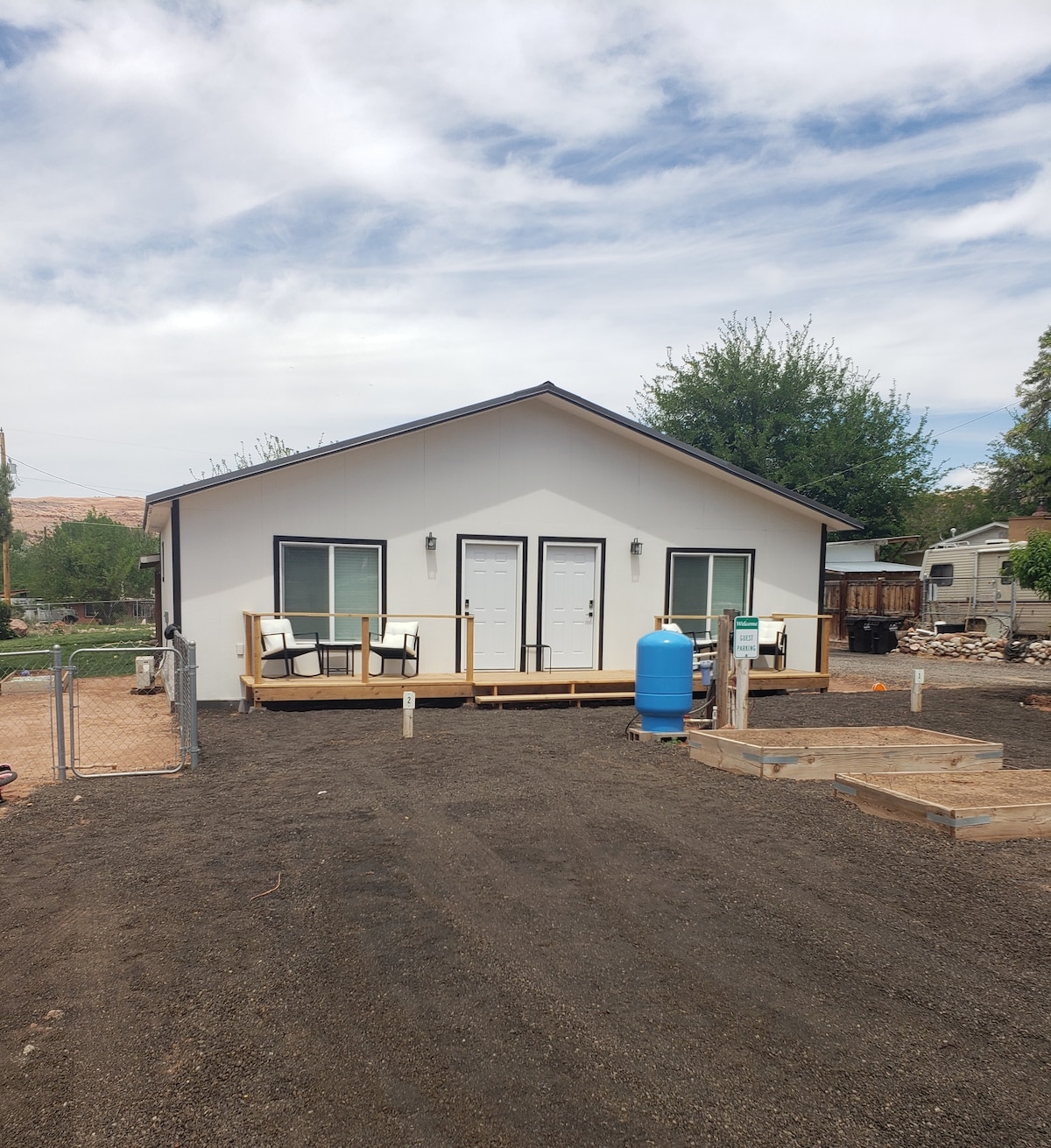 BEAUTIFUL PRIVATE SUITE, VERY SPACIOUS! Guest access to gym. Oliver House is situated at the end of a small and private neighborhood within one mile of downtown Moab. Guests have private entrance into the suite. Wood deck area shared with other unit #1 , private bathroom, kitchenette, living area, and bed. The living room sofa folds into a futon bed, and so does matching chair (perfect for child or toddler). Will consider hypoallergenic pets. Please see details!