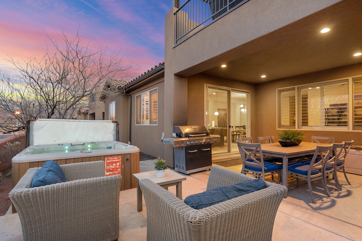 Come enjoy the GramLux at Sand Hollow and forget your worries in this spacious and serene space. Located within a couple minutes from Sand Hollow Lake, Sand Dunes & Golf Course. This 2,200 sf, 3 bed/3 bath has plenty of room for 8 guests. It boasts a master bedroom with walk-in closet, quarts counter tops, office space, soaking tub, walk-in shower and amazing mattress. A well supplied chef's kitchen, patio with wet bar, dining table, hammock, fire pit, and a gas/charcoal BBQ for outdoor cooking.