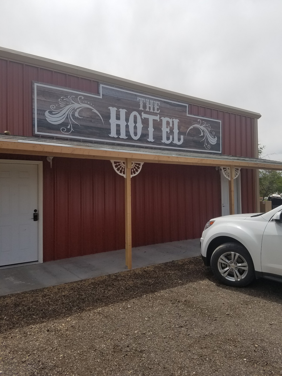 Miss Dolly is a small room located inside a charming old-west style hotel. Queen sized bed, with vanity and private bath. Clean and cozy. Downstairs includes a shared conversation area and dining tables. Dark Skies, cool temperatures, quiet atmosphere. Relax and enjoy. The hotel used to have a steakhouse that is now closed. Guest can use the kitchen to prepare meals and the dining room to dine and visit.