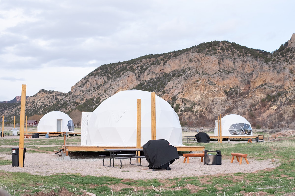 Come celebrate Thanksgiving, Christmas or a winter holiday in a dome. Bring your own Christmas tree from the national forest (just a couple miles away). It's so peaceful at 7400'. Set in piñons, junipers and sage, we're central to LOTS of National Parks and only 53 miles from Moab. It's worth the drive. The Domes are quiet, peaceful & WARM (heated). Sitting on the ground in nature. Come escape, relax and/or work remote at our secluded, cozy glamping dome resort! GREAT WiFi.
