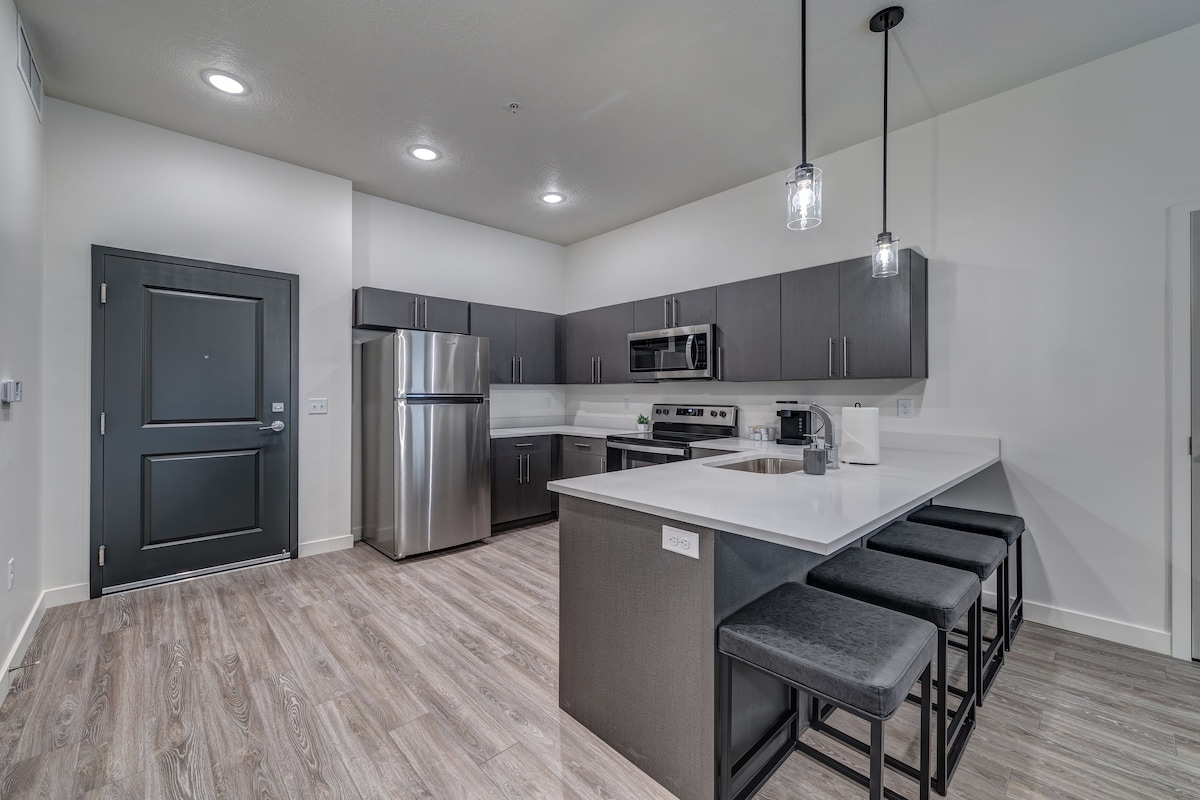 This ground floor studio apartment comes with access to a large Gym, Pool, Hot Tub, Clubhouse w/ a Pool Table and Shuffle Board, BBQ Grills, Firepits, and Pickle Ball Courts. Inside the unit there is a Designated Workspace with High Speed WiFi making this a great option for remote workers. There's a full Kitchen that comes fully stocked w/ cookware, utensils, coffee, and kitchen essentials. Great location within Draper offering quick access to I-15 and many main key attractions in the area.