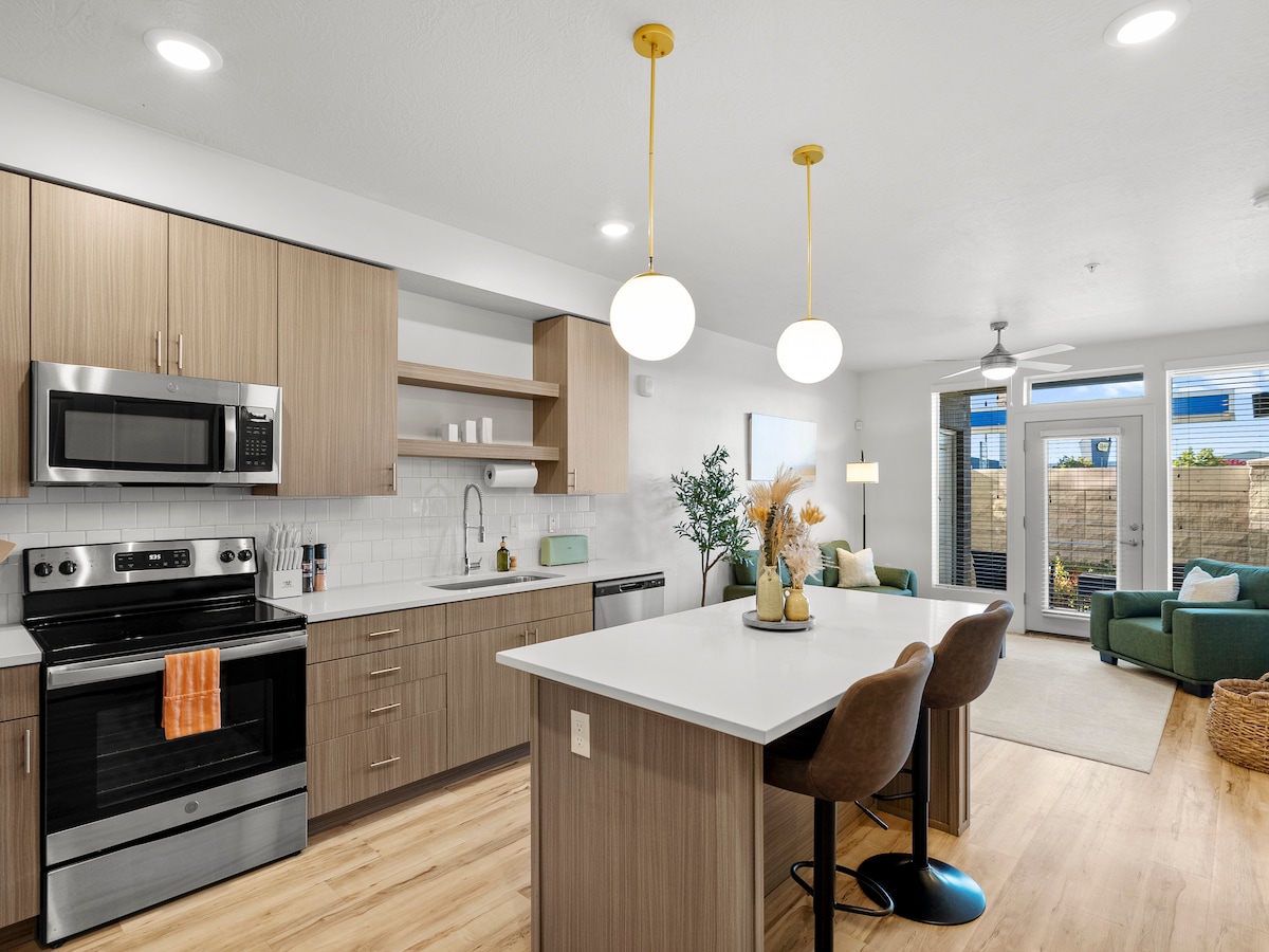 Experience luxury in our penthouse loft located in the heart of SLC. Enjoy stunning mountain views from the open floor plan and modern bohemian decor of the spacious living area with a large flat-screen TV. The fully equipped kitchen and en-suite bathroom with a luxurious shower make your stay comfortable. The central location puts you just steps away from restaurants, bars, entertainment venues, university, hospitals and convention centers. Book now and enjoy the best of Salt Lake City.