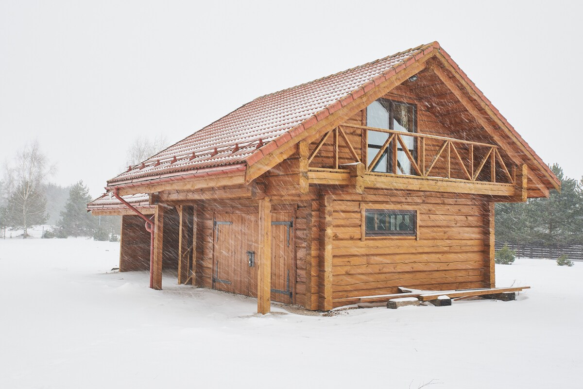 Exceptional romantic TOTALLY PRIVATE with no neighbors studio type holiday house with a view at the river, forest and meadows. River House is located at the eco farm with old Lithuanian breed horses and Angus cows. There are no neighbors around. River is with a footbridge. There is a full equipped kitchen, WiFi, projector with a screen, conditioning system air to air and a wood stove 🔥 House at River has it's own private hot tube electric, preparation time 6 h, price 80 eur.