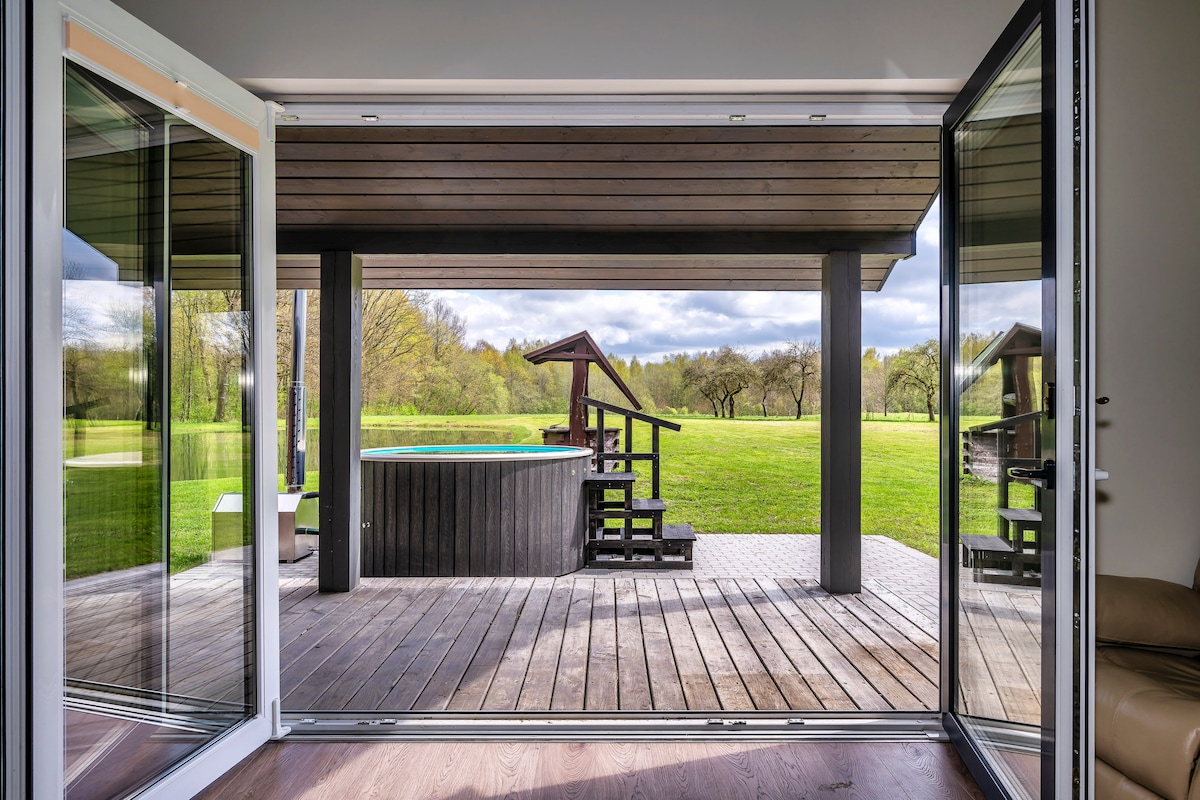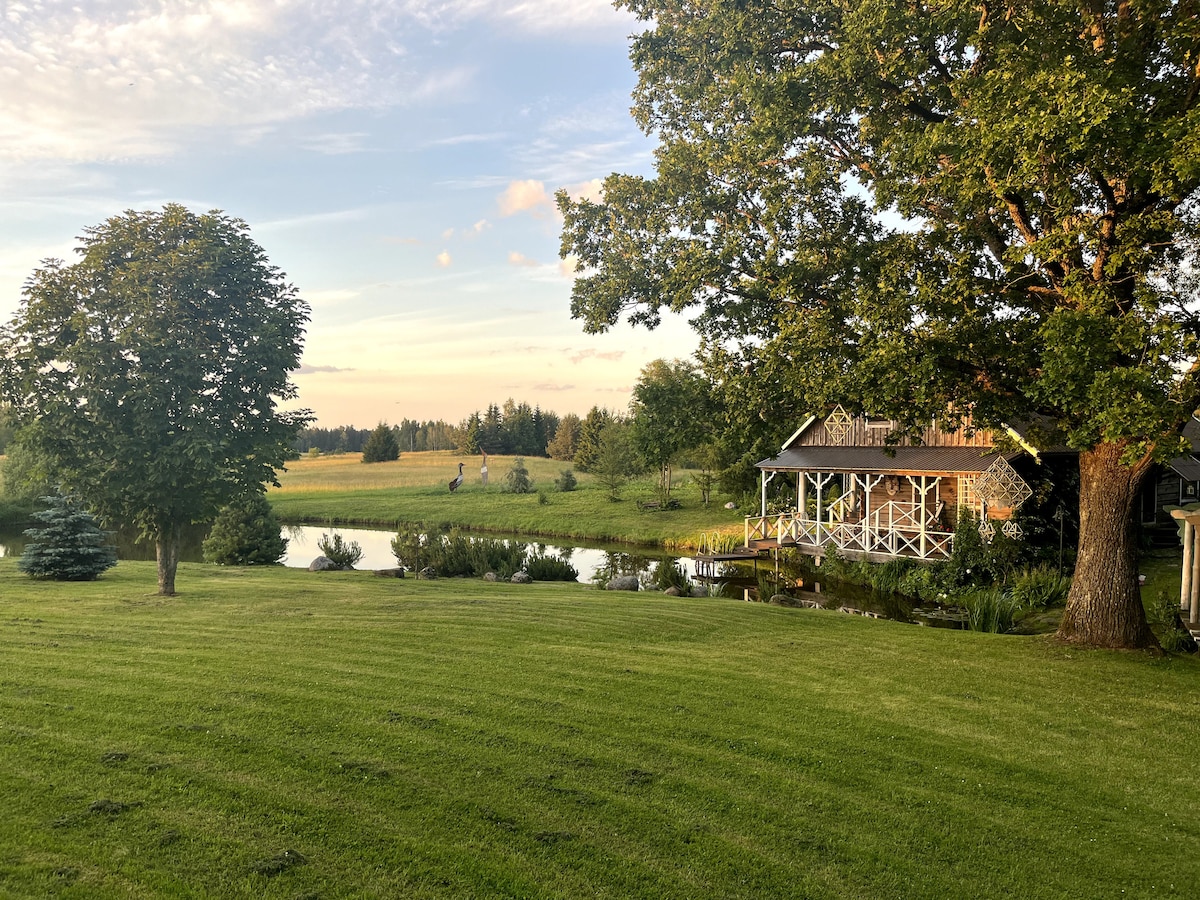Dear Vacationers, our family offer unique homestead surrounded by trees and next to a big lake. Villa has arbor with bonfire pit, sauna, outdoor bar, and more. The guest house has 2 sides. If you are a bigger group you can book the entire villa.