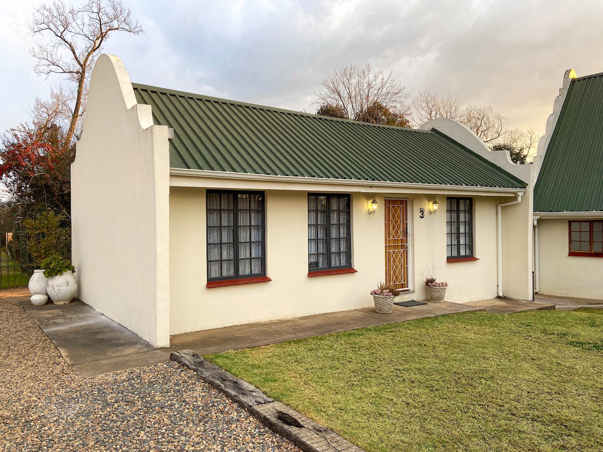 Stylish Cozy Cottage in Harrismith Enjoy a comfortable stay in this apartment with own entrance and covered parking. Safe and secure. Perfect for 2 adults and a small child. The unit features a well-equipped kitchen, shower and bath, Smart TV, and a private outdoor seating area to relax. Pet-friendly and powered by solar, so you won’t be affected by load-shedding. Perfect for a peaceful overnight stop in Harrismith.