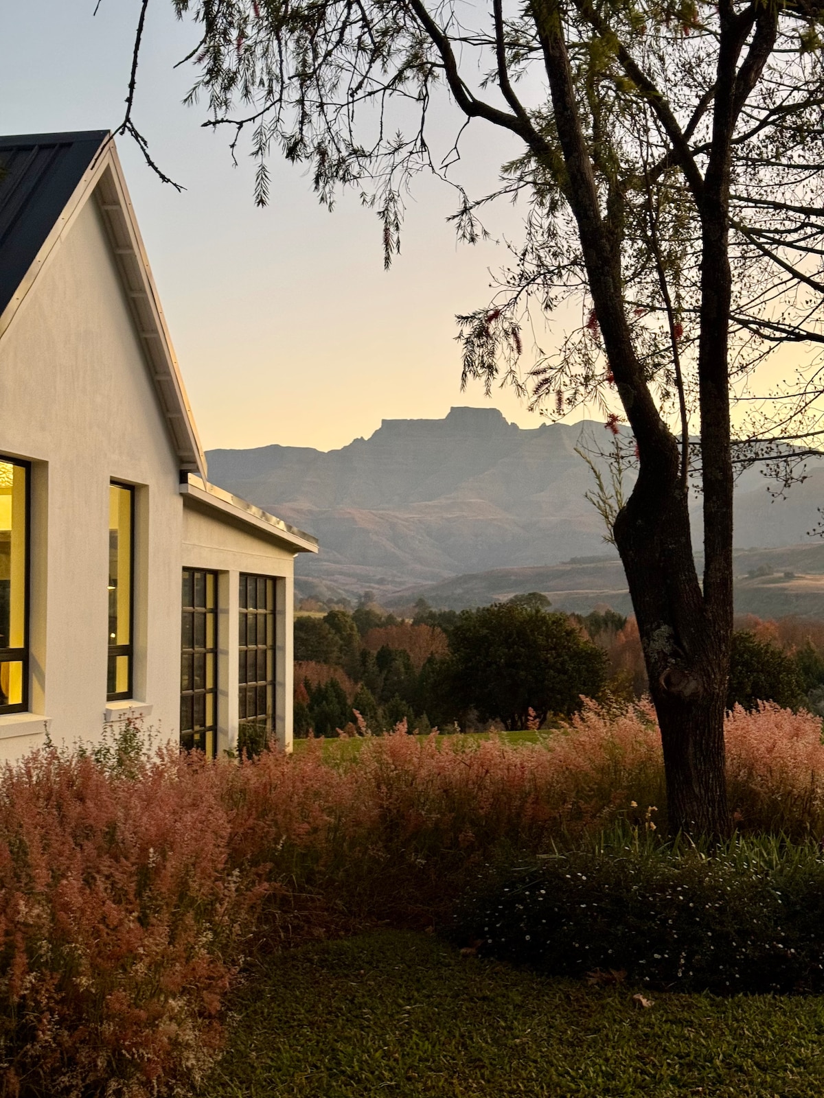 This charming and relaxed family home, set in a stunning Eco Estate, offers a true 'home away from home' experience. Accommodating up to 8 guests, it’s the perfect spot for a family getaway. While the serene beauty of the mountains provides a tranquil escape, the Drakensberg has so much more to offer. From the house, you’ll enjoy easy access to various walks and hikes, whether exploring the majestic mountains or venturing into the valleys with their lush indigenous forests and abundant birdlife.