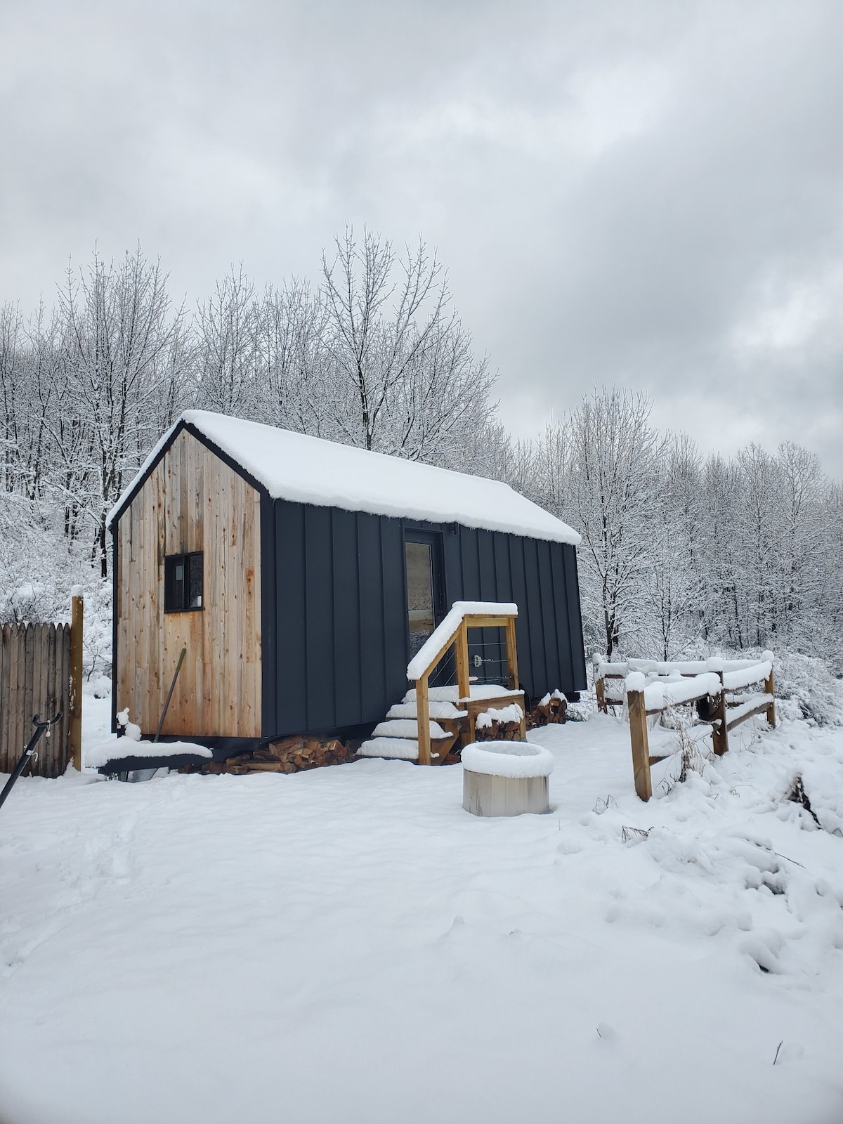 Enjoy a true a winter paradise on your own private property! Enjoy beautiful views of the mountains all around. This tiny home sits on a private two acres, has an outdoor patio area for lounging, grilling, and star gazing at night. The inside is fully equipped with a convection stovetop, fridge, bathroom, wifi, and queen-sized bed with an east-facing window for the perfect sunrise! Please note that during winter months you'll need to park by the entrance and walk to the tiny home (2 min walk)