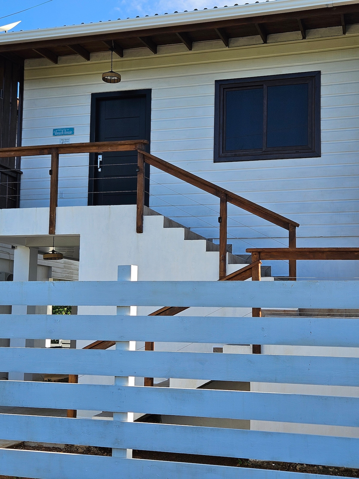 Hummingbird House is a beautiful/quaint 2 br home. Accommodations include, parking, WiFi & kitchen. Each Bedroom has a separate entrance (via the outside stairs) both with a Queen Bed, bathroom, air conditioning, mini-refrigerator/microwave, bed linens and towels. A unique feature is the private rooftop deck that is great for sunning & star gazing. Guests can enjoy snorkeling nearby, take a swim at Chepas Beach or enjoy a 5 minute Tuk Tuk ride into town. Ferry pick up is available upon request.