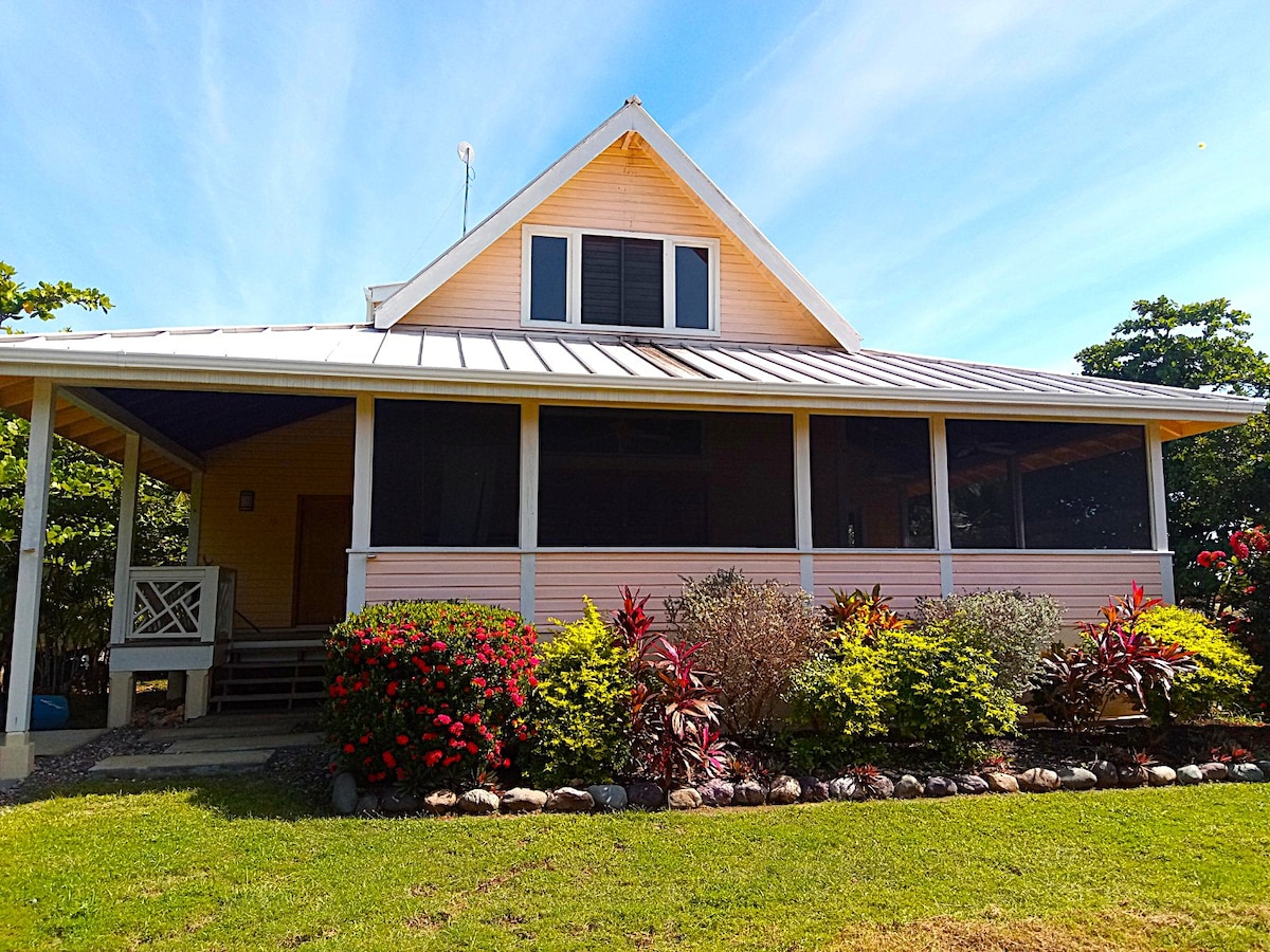 Newly renovated upscale home located at the end of main street at the upper lagoon bridge. Fully insulated, fully airconditioned and energy efficient. Built to USA building code. Short walk to popular dive centers, restaurants, bars and Bando Beach. Off grid solar powered. Two spacious porches. Private water supply. Fenced and gated for privacy. Lined with mangroves on the lagoon side. Spacious yard with colorful landscaping. Spectacular sunrises can be seen from the house.