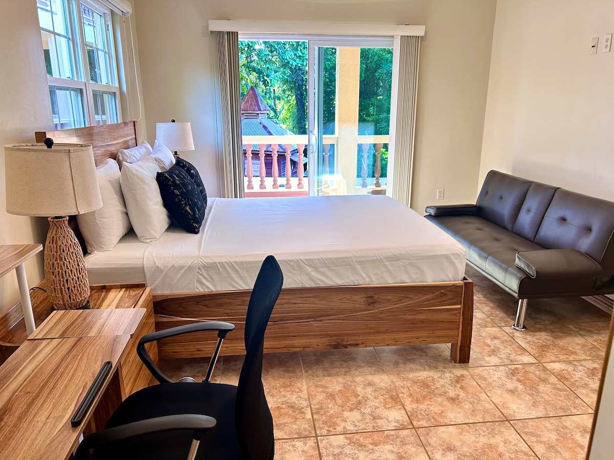 One bedroom with a queen size bed, one bath, kitchen, living area and a small open porch to enjoy the view of the patio. Weekly cleaning service is provided at no additional cost. Electricity and personal items are NOT included. 1 pet maximum with a one time fee of $80. Can be paid at check in (Pet must be friendly since other guests and pets share the same property) Check-out time is at 11:00a.m, any guest remaining after check-out time will be charged for an additional day ($120).