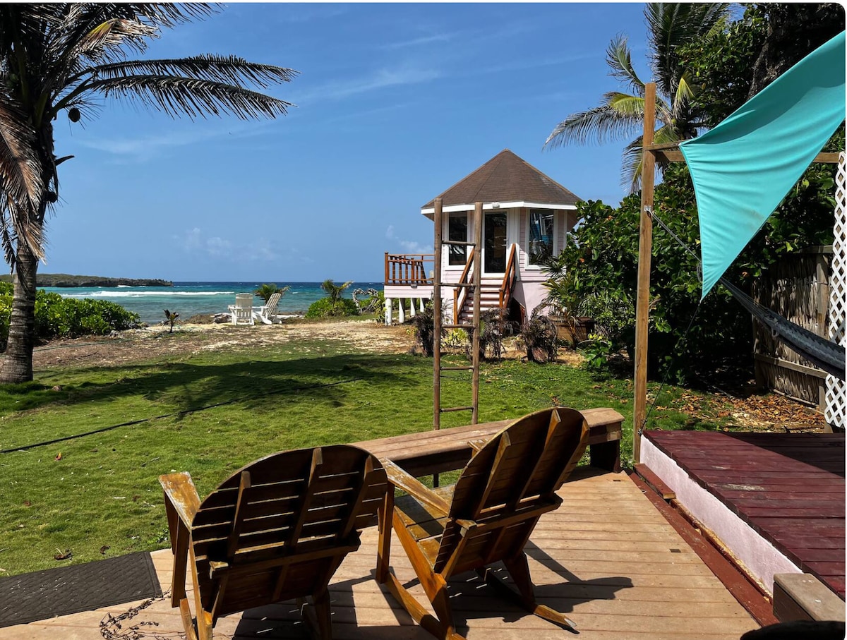 The Beach Casita is part of the Paradise Regained properties and is a rustic, self-contained oceanfront retreat with views of the Caribbean ocean, access to the Paradise Regained oceanfront and some of Utila's best reefs, excellent snorkeling and a saltwater swimming pool. With beach chairs available and our beach gazebo with hammocks and Adirondack rocking chairs, you might not want to leave. But if you do, it's just a 15 minute walk to the center of town.