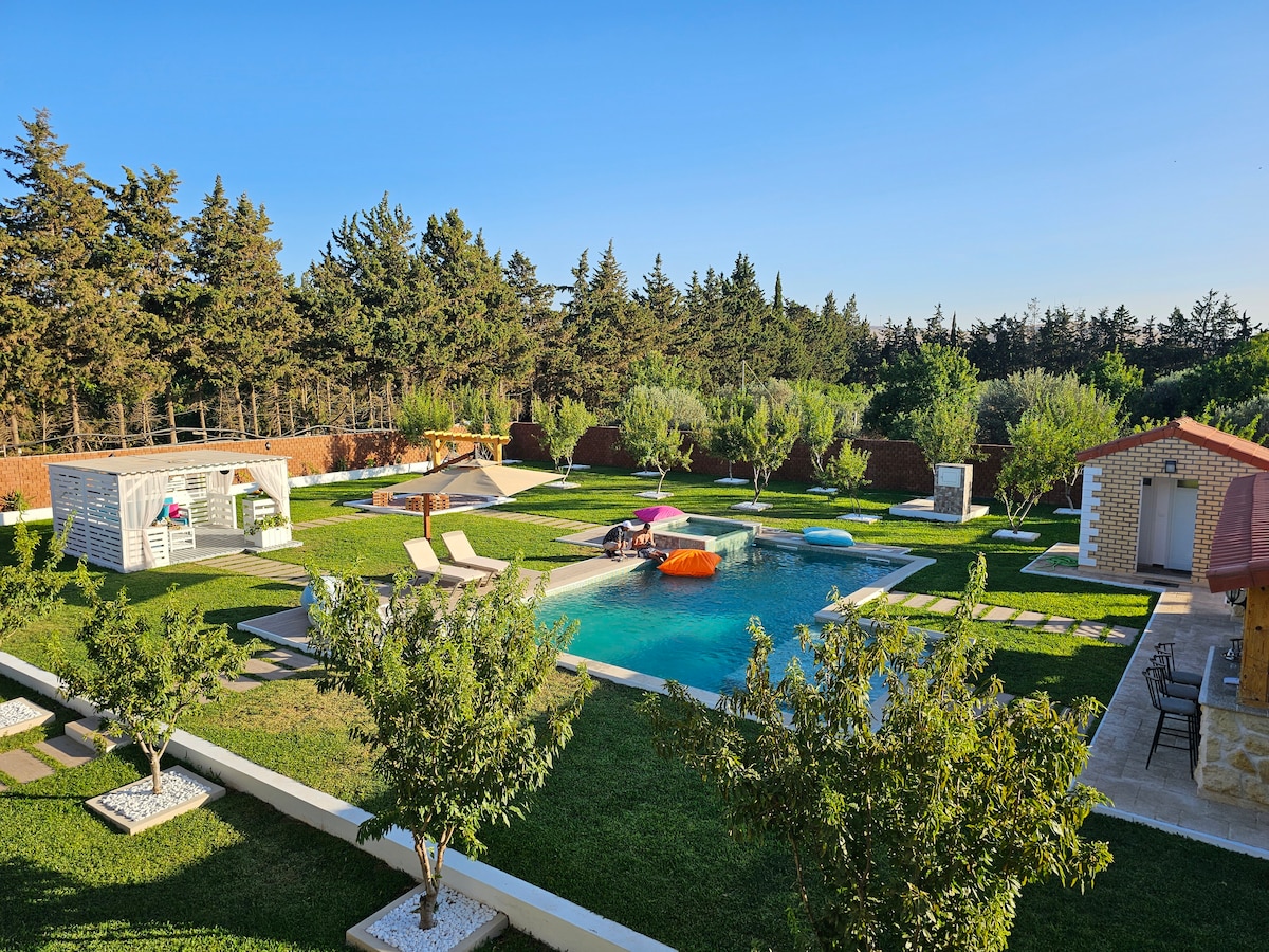 Welcome to our spacious and elegant villa! The villa features a large swimming pool perfect for relaxing in the sun, as well as a fitness machine for those who like to stay active. It includes three comfortable bedrooms, making it ideal for families or groups of friends. Although the stores are about 3 km away, we’re happy to assist you with any errands you might need. Enjoy a stay that combines comfort and luxury—we’re here to make your visit special!