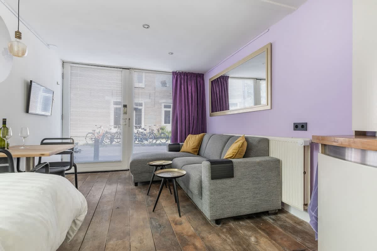Spacious, cosy ground floor studio, fully equipped, tastefully decorated and with a wonderful sunny private flower garden. The house is located in the very attractive neighborhood of Wittevrouwen in a quiet street. It has a spacious charming private living room with king-size bed for 2, a couch and armchairs, a dining table with kitchen and separate hallway and a very small but newly renovated toilet with shower.
