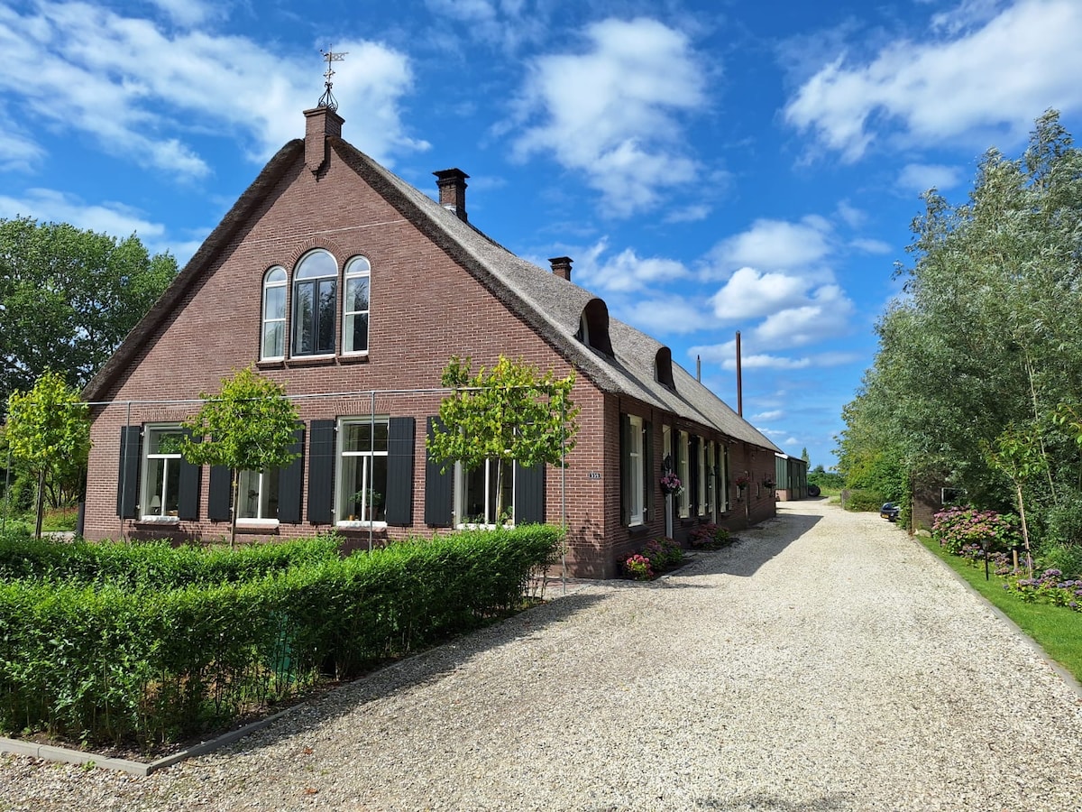The cottage is a renovated barn in the back, overlooking the meadows in the beautiful area of Schoonrewoerd. The 1 bedroom cottage is fully equiped , Kitchen, Bathroom and a 2nd toilet. It is 60 sq/m big and can host up to 4 people. Ideally 2 adults & 2 children, but 4 adults is possible (for a few days) but it might be a bit crowdy. You can enjoy your own private garden near the water, you will have easy and private access to the cottage via the right side of our farmhouse.