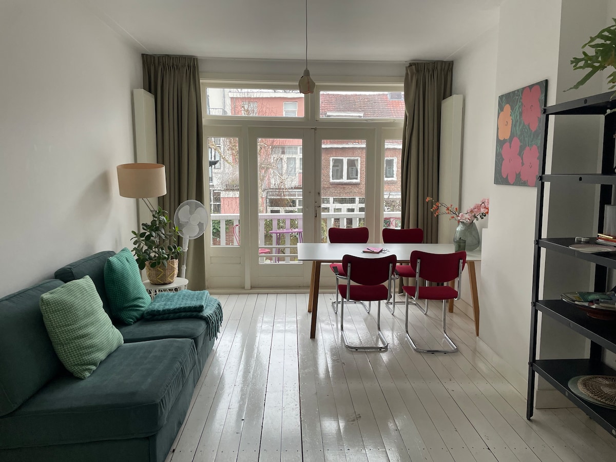 Located in a lovely area, this newly restored apartment, cozy and quiet,is very close to the beautiful historic centre of Utrecht. Situated on the corner of the Singel canal, its only fifteen minutes walk from Central Station. The nice apartment is a spacious 68 m2. It has central heating, fully equipped kitchen, one large kingsize bed, comfy ensuite bathroom, rainshower, fluffy towels, hotel linen, privat garden, wireless hi-fi, flatscreen tv. dvd and high speed internet, Nespresso, etc!