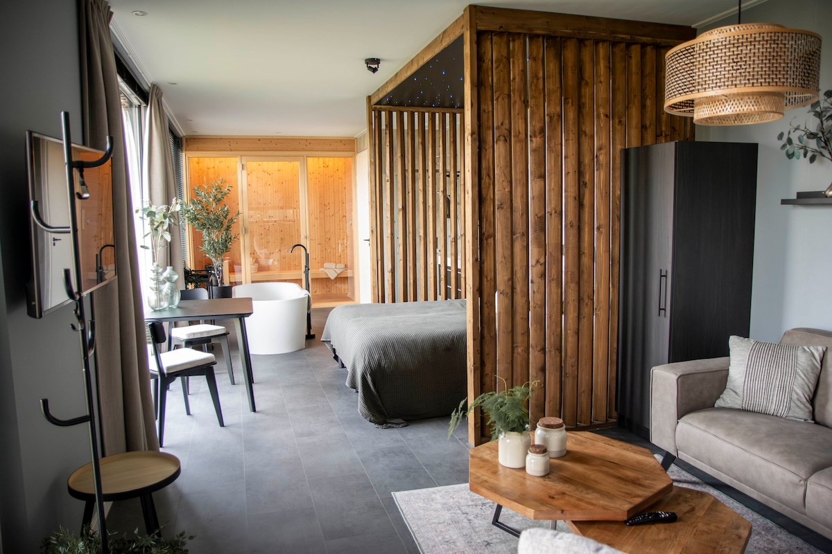 Welkom bij het rustgevende Wellnesshuisje aan het Veluwse bos. Is het tijd om je terug te trekken, te ontspannen en op te laden? Dan is onze stijlvolle Wellness Cabin met Sauna iets voor jou! Kom volledig tot rust door heerlijk in het warme bad te liggen. Laad op door gebruik te maken van de infrarood sauna of geniet van de fijne regendouche. Zet de wekker uit en word heerlijk wakker met uitzicht op de prachtige bomen. Het bos ligt haast aan je voeten. Gun het jezelf.
