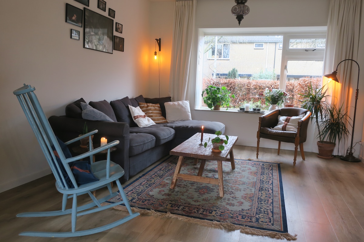 Fully equipped house with lovely garden and free parking in the street/neighborhood. Located only 10 minutes from the city center by bike. Amsterdam is easy to reach (40 minutes by train). Perfectly situated if you like to explore the cities as well as nature. Ideal for families and colleagues on a business trip