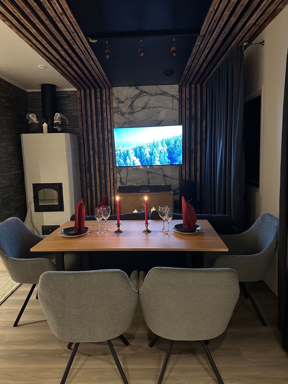The enchanting beauty of nature, wilderness silence, and Northern Lights make this place unique. Experience Lapland’s magic in a spacious, bright cabin by Lake Inari. Escape the hustle of everyday life and surrounding noise! The villa is well-equipped with modern technology. A large fireplace and wood stove bring coziness to dark winter. Ideal for couples, families, or groups of friends, with plenty of room for everyone to relax together.