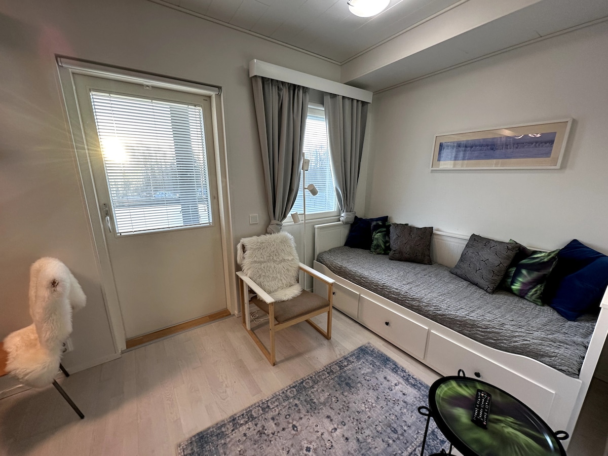 Studio with own entrance & a kitchen and a bathroom. 10 min walk from the bus station, from the supermarkets and other services. The Ivalo airport is only 10km away. There are two single beds. Desk and chairs You will also find a kitchenette with fridge, stove and microwave, crockery and cutlery. The studio has a private bathroom with a shower. Towels and toilet paper are provided. Free Wi-Fi.