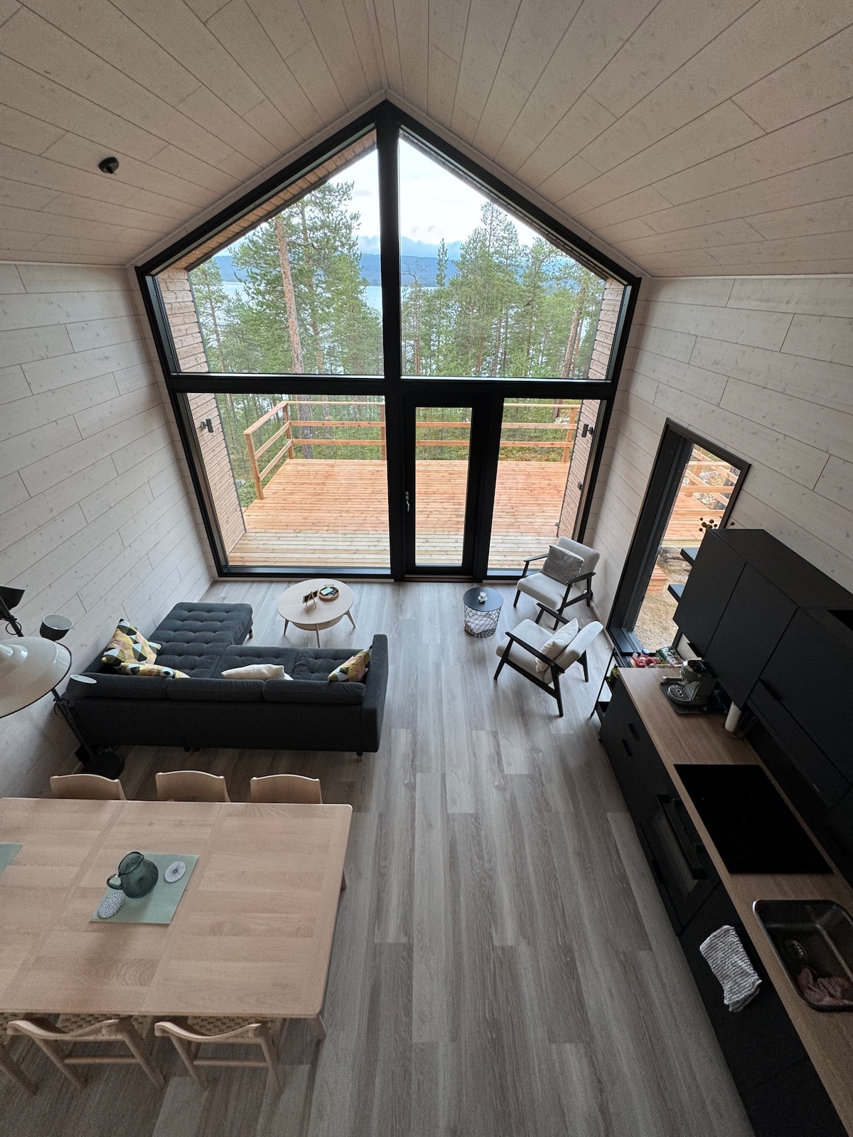 High-quality holiday Villa, built in 2022, at a peaceful vantage point in Inari. Great views over the lake Rahajärvi from large windows. Surrounded by authentic Lappish nature. In case you do not want to explore the nature for some reason, there are two smart TV's (65" and 55"), PS5 and Nintendo Switch to play with. Bedroom’s TV is for streaming only. Distances; closest neighbour 0,4km, bus stop 5km, supermarket 15km, restaurant 15km, airport 25km. Note! Villa's fireplace is not in use.