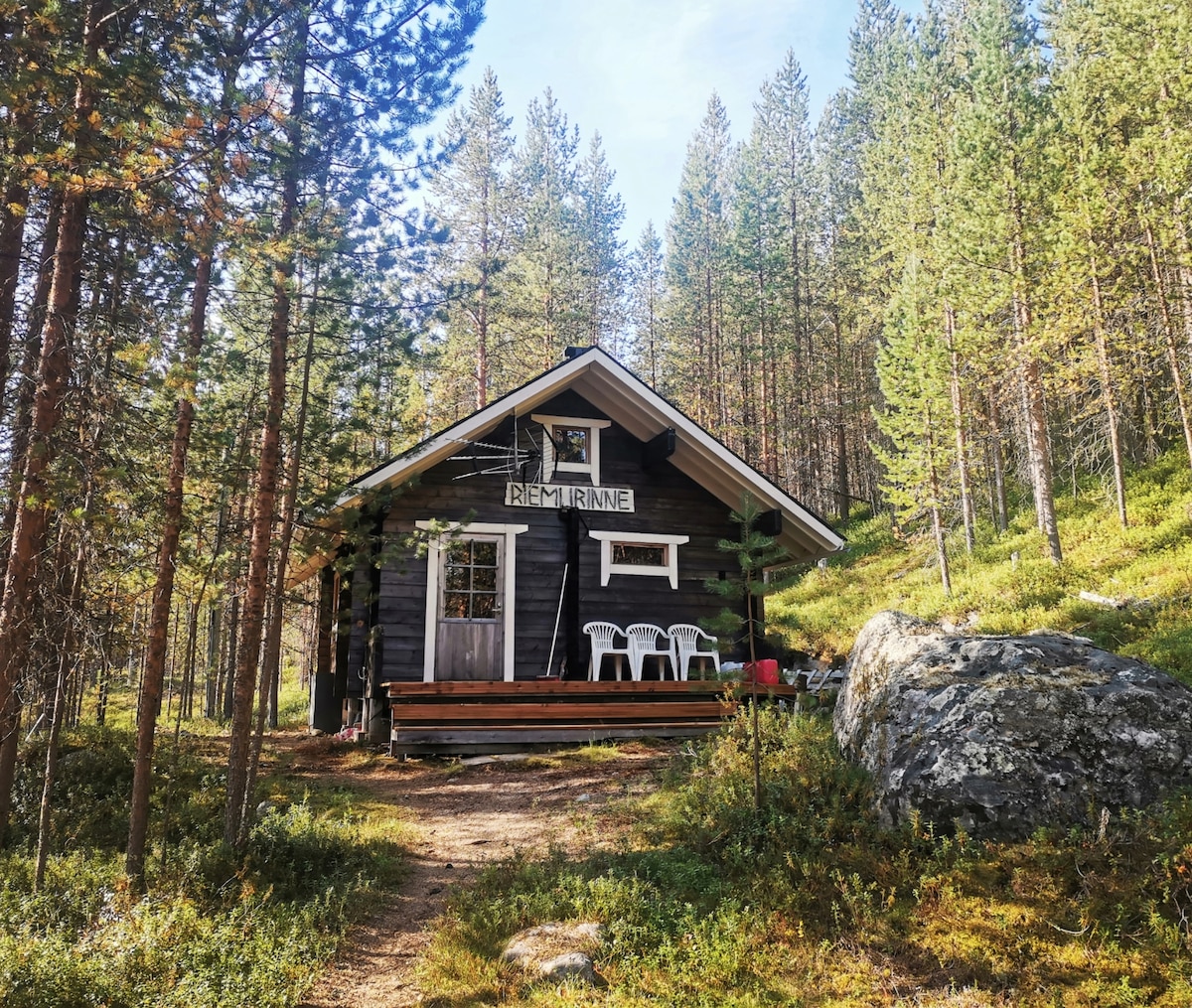 Come to relax for Metsola. Very peaceful log accommodation located next to the lake Inari. Main building, sauna room, hut and storage. A parking lot and pier at lake. Dry toilet away from main building, no running water but in summer a tube from the spring. 12V electricity from the battery for lighting and usb-charging. If necessary, 230V electricity with generator. The kitchen has a gas stove and a 12V refrigerator or a small gas refrigerator. The cabin is heated with a fireplace and stove.