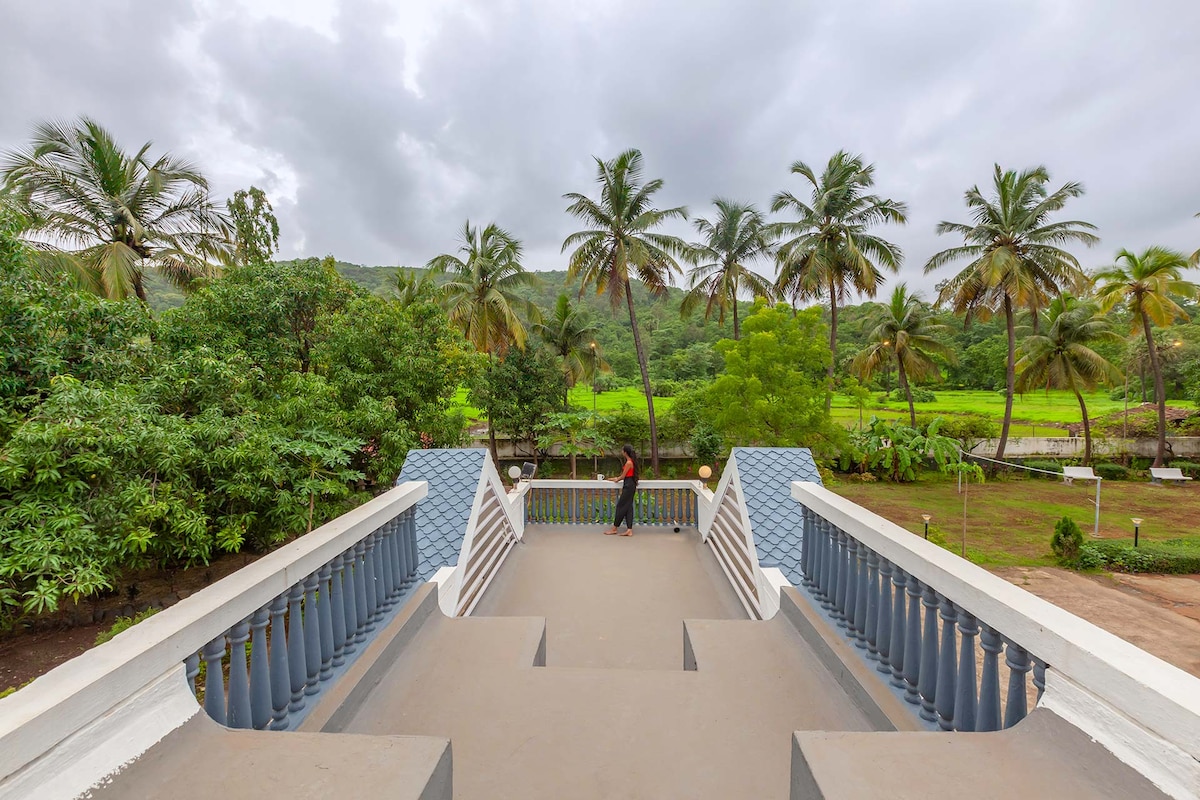 Welcome to Nirvana Villa Vasai! Half-acre 4 bedroom luxurious Bungalow is located in the heart of Vasai (w), an ex-Portuguese colony. It's ideal for parties or a relaxing weekend break. Our property has a large landscaped garden, a beautiful swimming pool, ample parking and a small personal org farm too. Ideal for family get-togethers, partying with friends or office outings - can accommodate up to 25-30, comfortably. Our amenities, space & homely environment will make your stay memorable!.