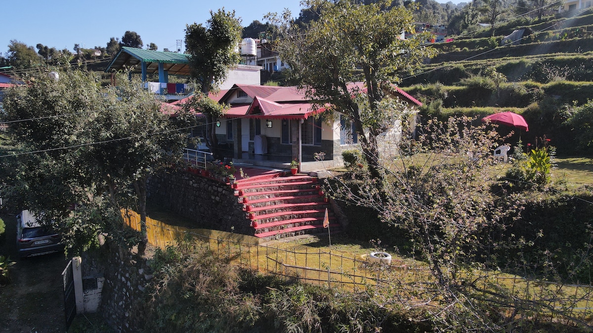 ★ Breakfast is complimentary! ★ Discounts on long term stays. ★ High speed WIFI & Safe Parking ★ Must climb stairs. ★ Home-cooked meals with Room Service ★ 14 Kilometres from Nainital ★ Scotty, Bike & Taxi available Surrounded by pine trees and overlooking a breathtaking view, a peaceful retreat welcomes you! It gets better with our warm hospitality and fresh home-cooked meals.
