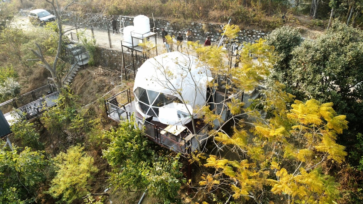 Reconnect This Geodesic dome is situated in the middle of hills with unforgettable escape. 4.5 hrs from Rishikesh and 5.5 hrs from New Delhi, this place offers you secluded, serene and calm environment to find yourself. The best local chef is always ready to provide you with the best cuisines of the hills. Pac your bag and rush to grab the seat. There is no disturbance like normal hotels and cottages, as this is pretty secluded on the outskirts of hills.