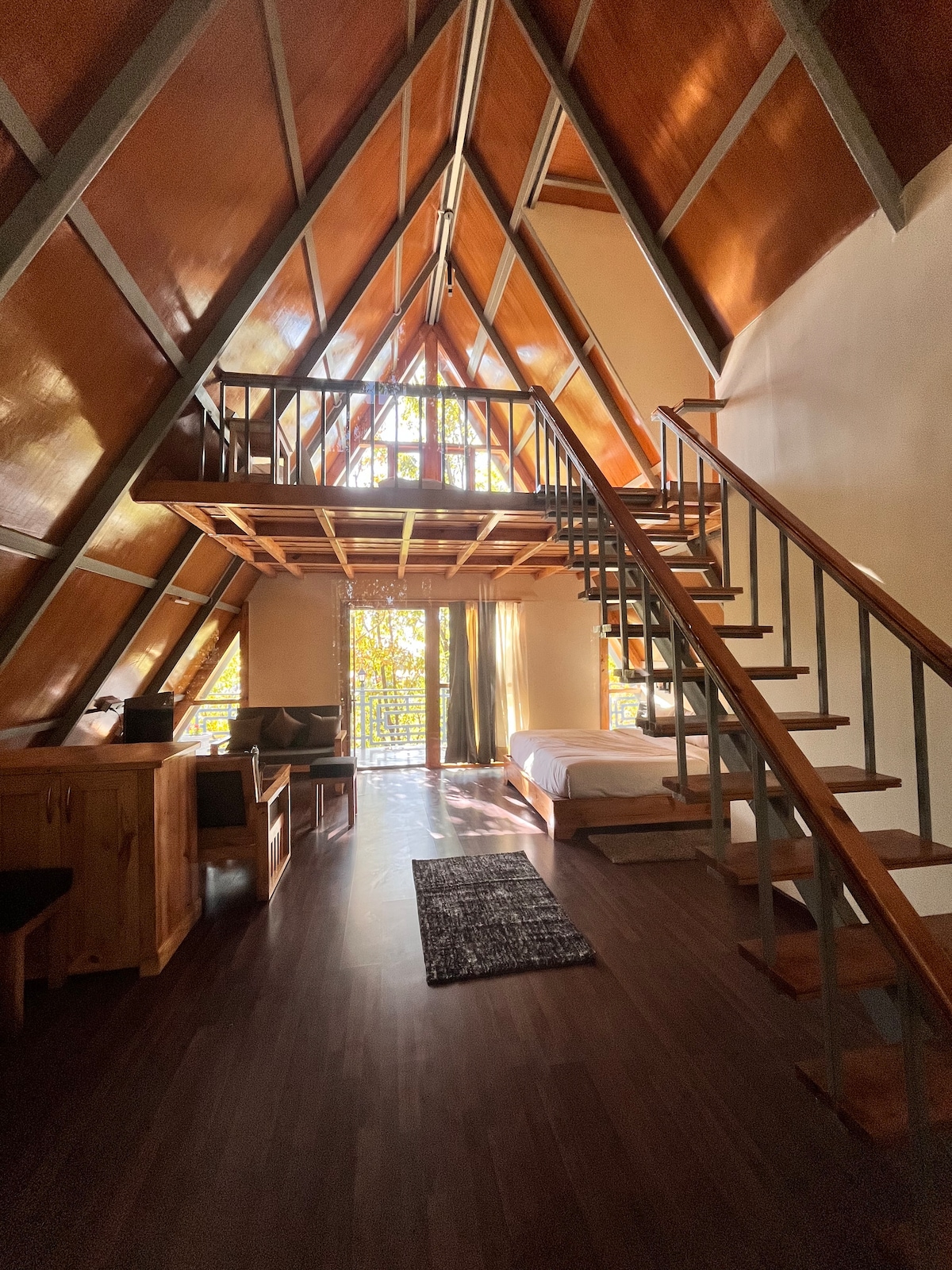A frame intimacy, balcony sunrise, quiet corners. Made for couples who love slow mornings. Work ready, power ready, phone optional. Raya feels cozy and close. The balcony is the hero here, tea and first light every day. Simple interiors, warm wood, and a clear view set the tone. WiFi is fast, power is backed up, and there is a tidy workspace if you need it. Drive time from Delhi is nine to ten hours. Kathgodam is the nearest rail. Free parking. Best for couples and anniversaries.