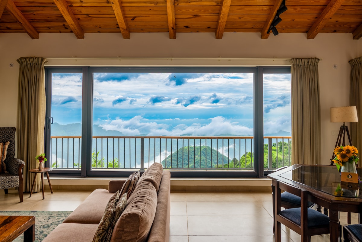 Milele means “forever” in Swahili-a word that captures timelessness, a sense of enduring beauty and abundance.Tucked away in the serene village of Basa near Bhimtal, Milele is a 4-bedroom retreat designed for those who seek more than just a getaway. It’s a space to breathe, reflect, and truly connect. From the massive windows, you can watch the clouds drift by and see the river winding through the valley below. Every moment here feels expansive and unhurried.