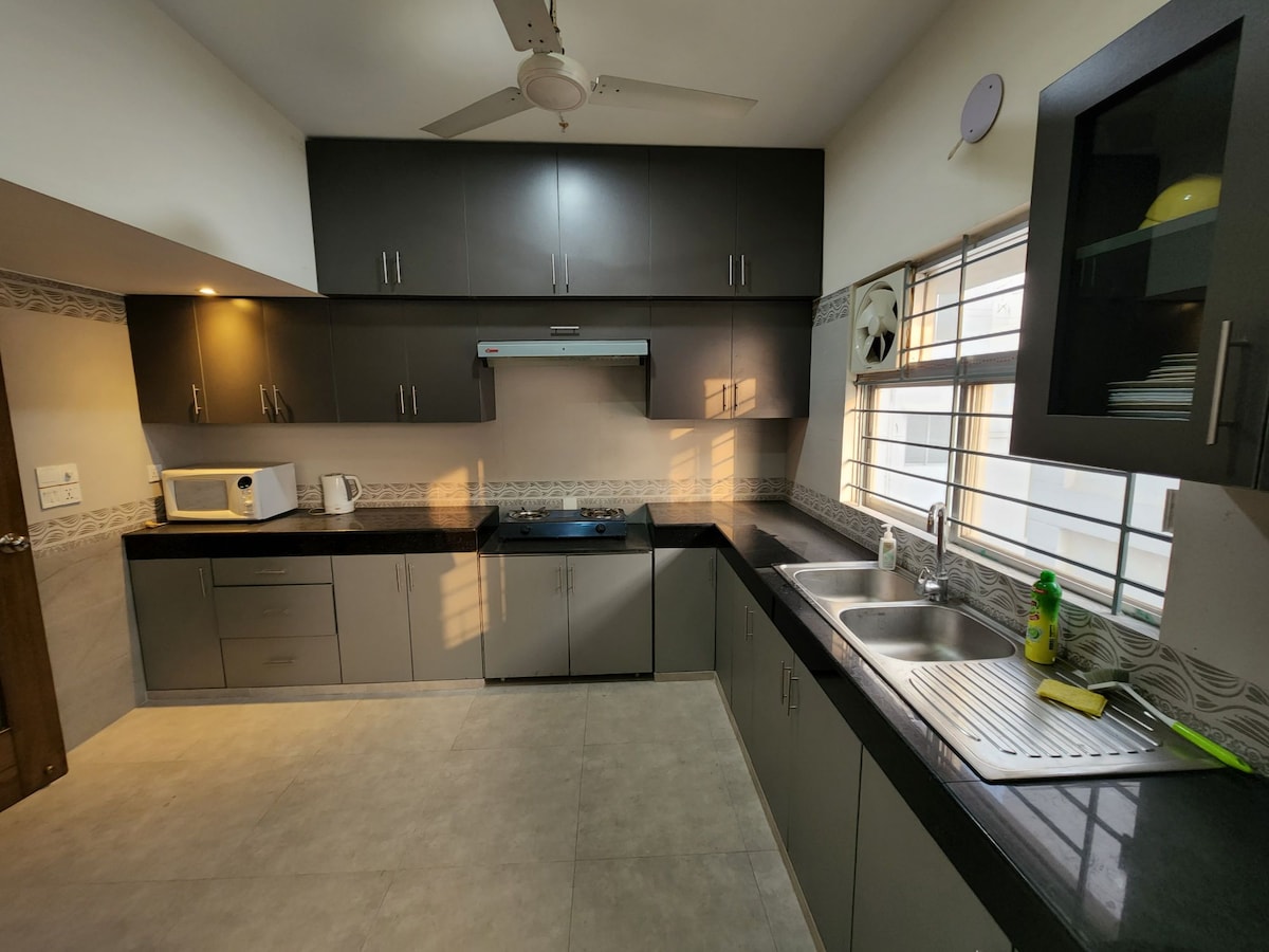 Secured Studio Apartment near Airport AC WiFi Oven
