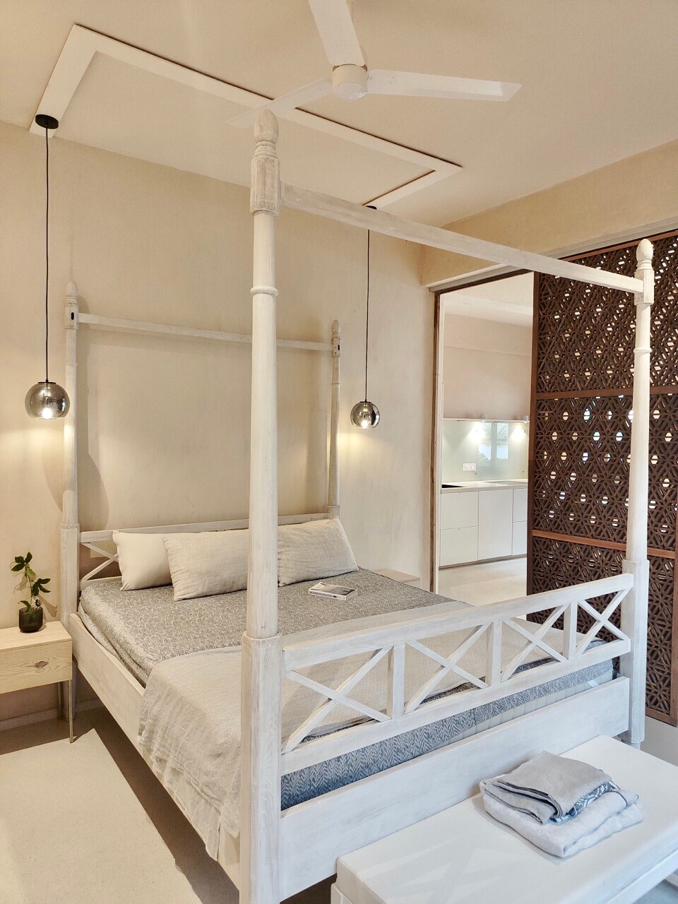 Modern Studio Apartment in the Heart of Patnem – Walk to the Beach! This self-contained premium studio apartment offers a spacious open-plan layout that combines the living room, bedroom, and kitchen into one cozy, well-appointed space. The apartment is fully furnished and thoughtfully designed to meet all your basic needs, whether you're here for a short getaway or an extended stay. Enjoy fast, high-speed Wi-Fi, perfect for remote work or staying connected while you travel.