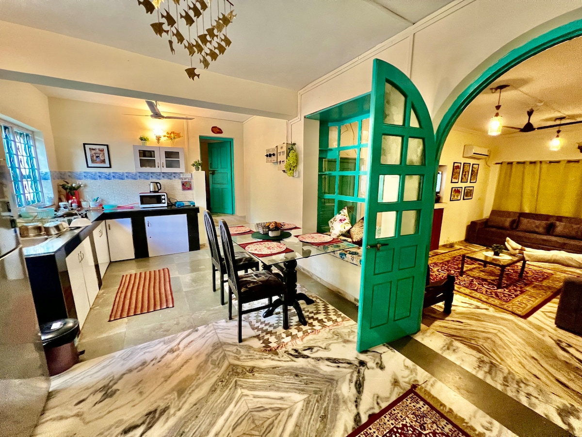Escape to Casa Mastimol, a fully furnished villa with private outdoor garden. It is just 12 minute drive from Palolem and Patnem beaches. Enjoy plush linens, hot showers, and optional blackout curtains for ultimate relaxation. The gourmet kitchen has everything you need, and our talented housekeeper can whip up delicious meals for a small fee. With unbeatable access to beaches and all essentials nearby, this private retreat for 4 guests is the perfect blend of luxury and convenience.