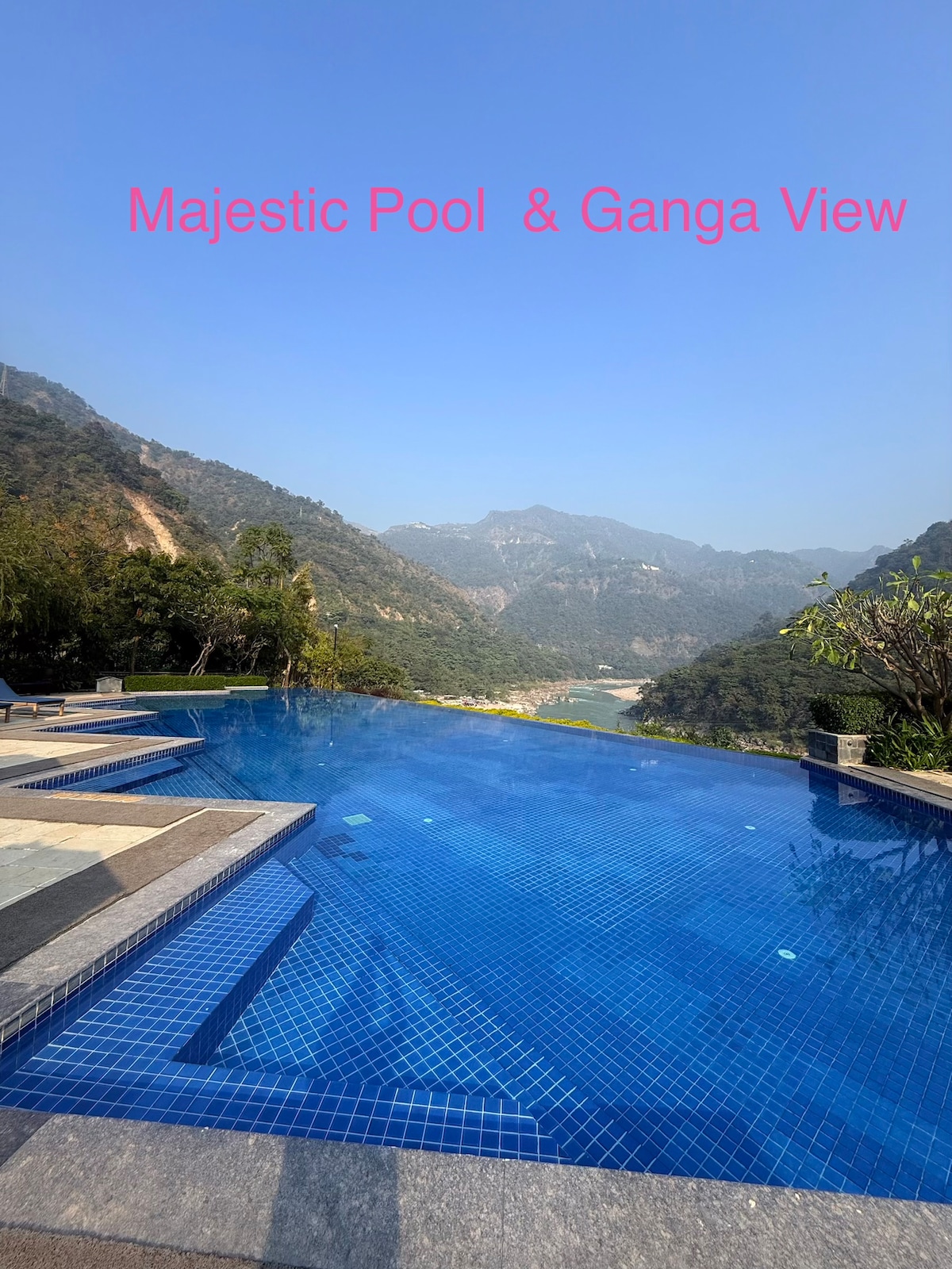 The property is unique property,which have been made up by utmost perfection ,and five star property standard ,the property gives garden , mountains mesmerising view . With a pantry .enjoy the infinity swimming pool with mesmerising view of river Ganges. Also famous aarti performances, (airport is only 25 km. Railways station is 4 km. Bus station is 2 km. Laxman jhula is 520 metre (parmarth Niketan ashram , geeta bhawan . Ram jhula almost 1 -2 km. Ganges beach is walking distance’