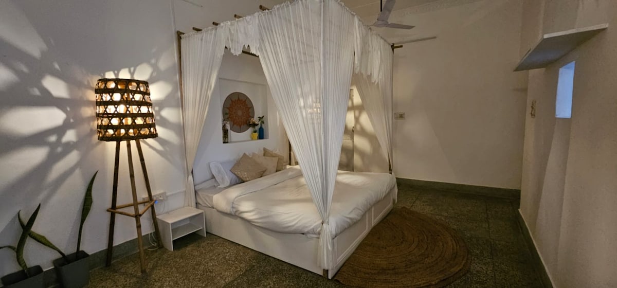 Step into a sanctuary where modern comfort meets the serene spirit of the Ganga. Nestled just steps away from the river, this stylish and calming retreat is designed for travelers who seek peace, rejuvenation, and a touch of luxury. Wake up to soft sunlight filtering through large windows, enjoy your morning chai on a private balcony with fresh river breezes, and unwind in thoughtfully curated interiors that bring together elegance, comfort, and nature.