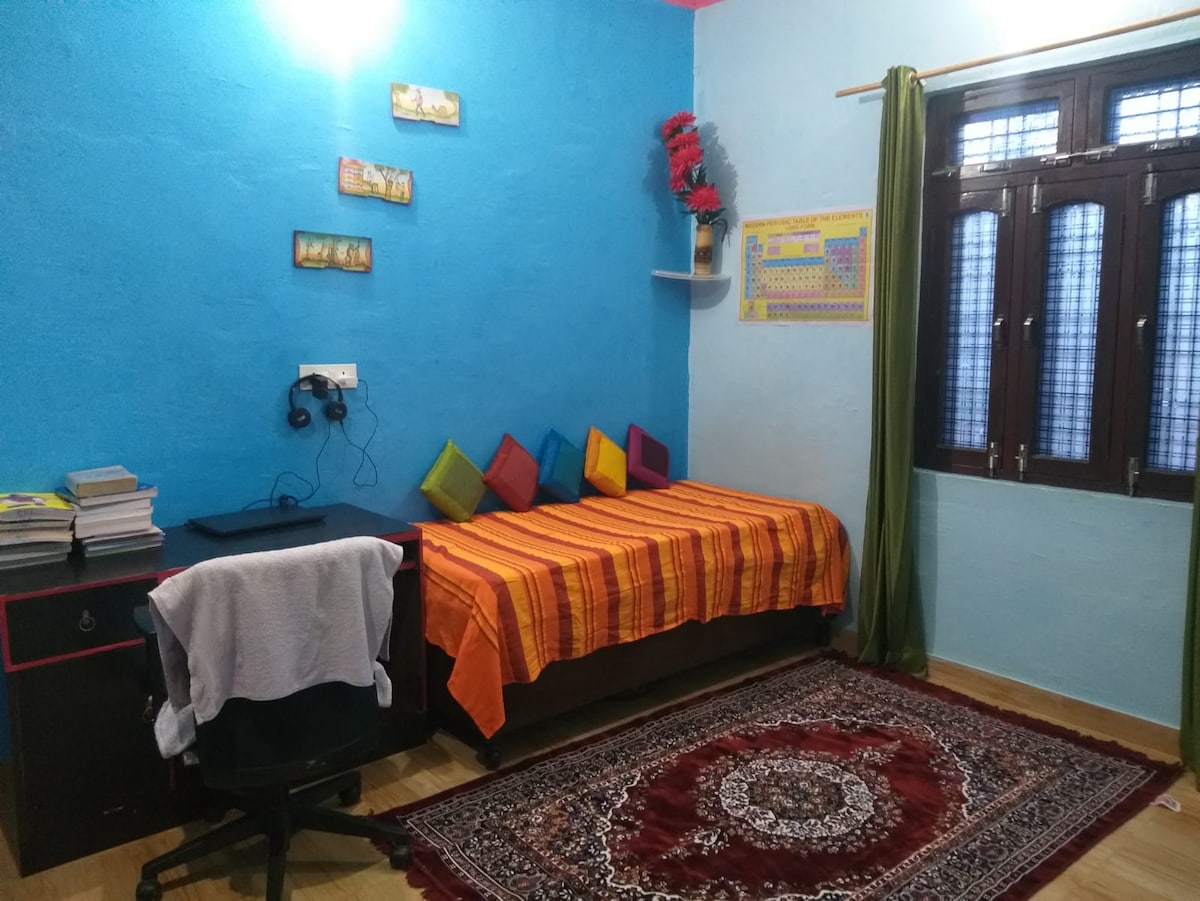 Best Homestay for small family or business stay, Your Peaceful Hill-View Escape in Dehradun Wake up to golden mornings, fresh valley breeze & calming Mussoorie views First-floor suite with king bed, AC, Wi-Fi, smart TV & light-cooking kitchenette Private terrace for chai, sunrise yoga, reading & romantic sunsets Hosted by a Retd. Colonel & former Principal, safe, cultured, family-friendly home Close to FRI, IMA, Doon School & ONGC; perfect for families, professionals & long serene stays!!