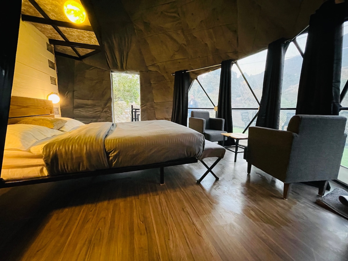 Each dome is a private haven of tranquility, offering panoramic views of the lush valleys, rolling hills, and the meandering Ganges River below. The interiors are a harmonious blend of contemporary design and rustic charm, featuring premium furnishings, plush bedding, and modern amenities that cater to your every need. Whether you're lounging on your private terrace, sipping on a cup of chai while watching the sunrise.