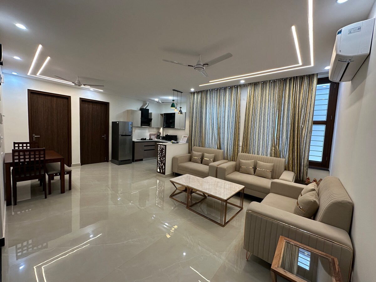 Ultra luxurious 3BHK retreat in Dehradun with stunning scenic mountain views. Designed for comfort, it offers fast Wi-Fi, covered parking, lift access, premium amenities, and spotless cleanliness. Ideal for up to 7 guests, the apartment features bright living spaces and a relaxing balcony. Located in a quiet area with easy access to markets and a quick drive to Mussoorie. Sahastradhara natural springs -8 km Maldevta picnic spot -9 km Mussoorie -30 km Landour -34 km