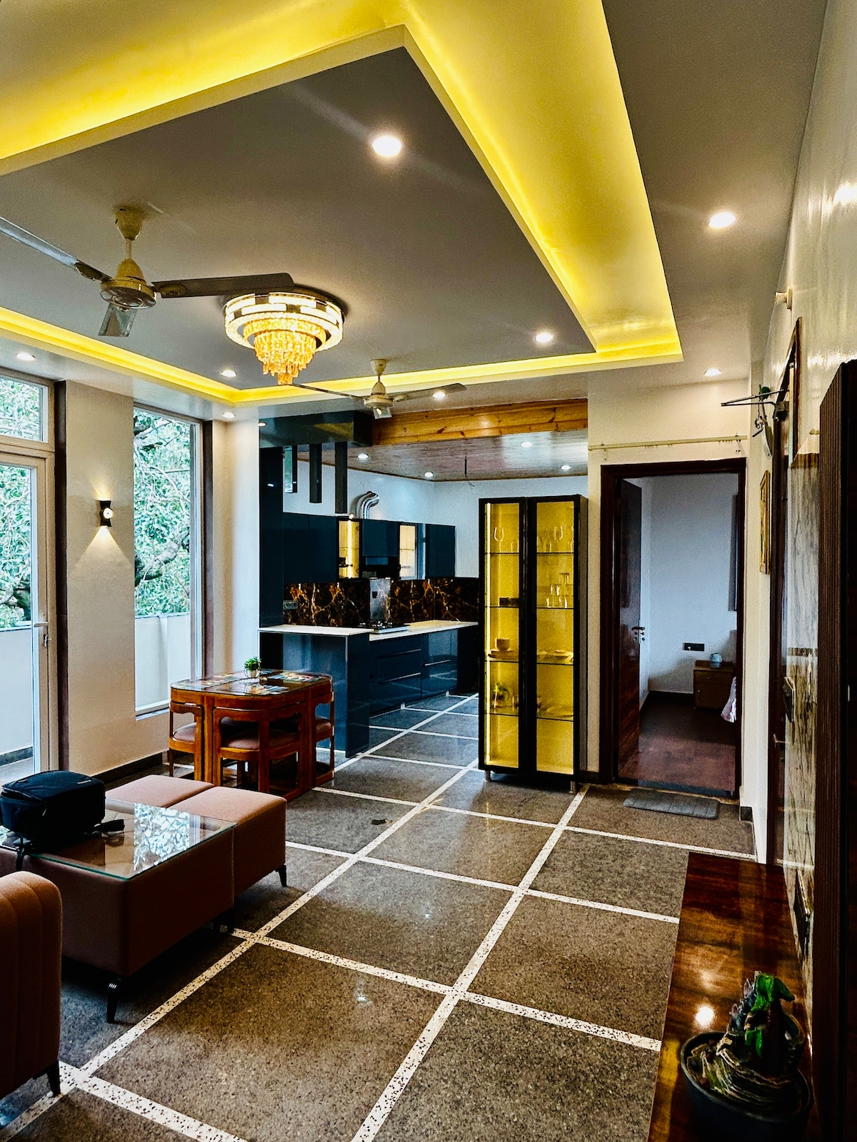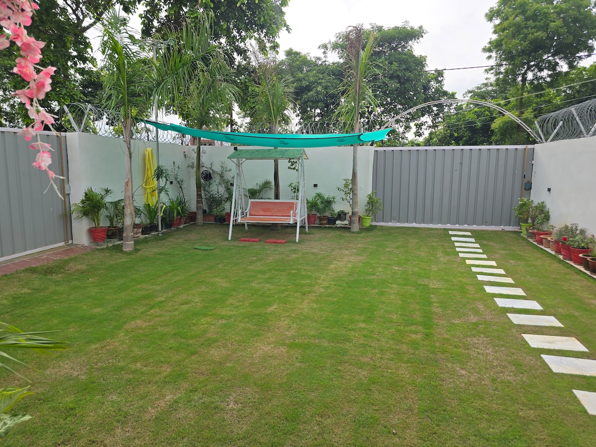 "Welcome to our tastefully curated homestay, where comfort meets style. Adorned with elegant panels, ambient studio lights, and a 55-inch TV, our space is designed for groups to unwind and relax peacefully. Please note, to ensure a peaceful environment for all guests, we kindly request lowering music by 10:30 PM, and we appreciate your understanding in refraining from loud noises thereafter.