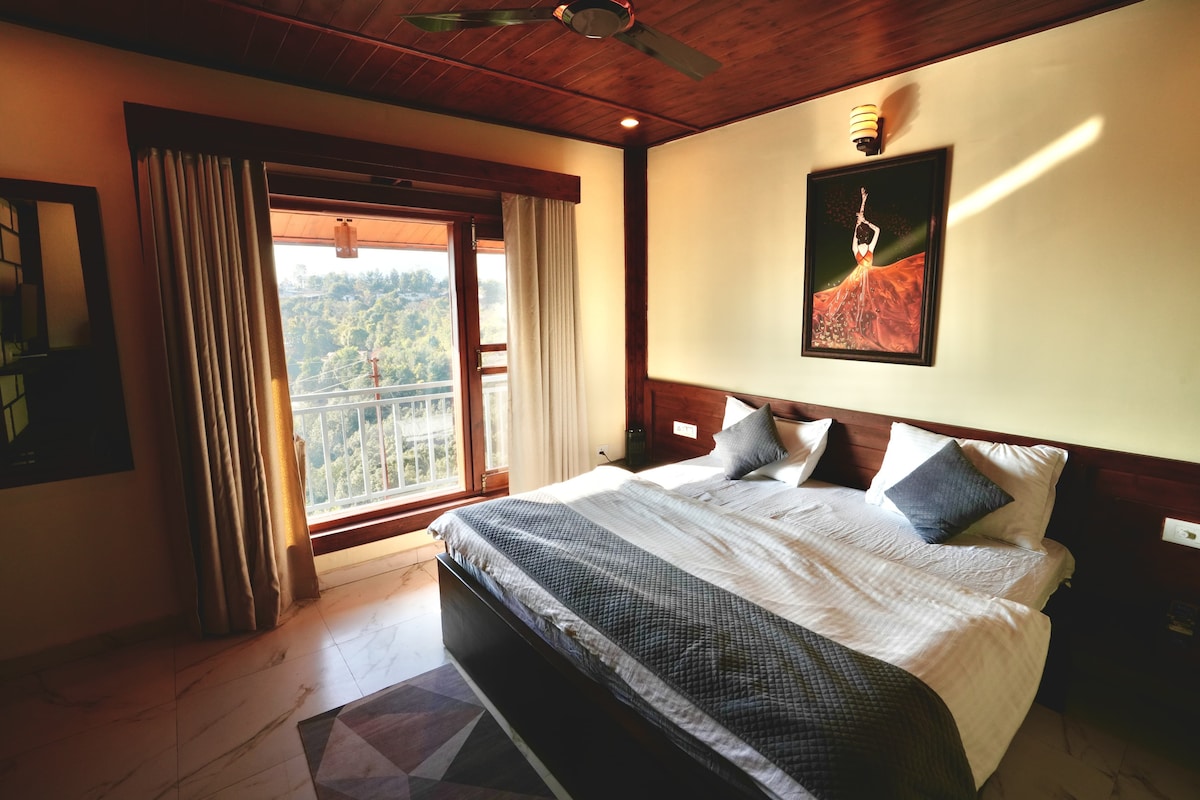 Relax with the whole family at this peaceful place to stay. Pahado vali Maggie and chai-Enjoy every evening. This 4 bedroom villa offers stunning views of valley and mountain making it an ideal retreat.The first floor features elegantly designed living spaces and a master bedroom all with panoramic vistas.The upper level has 3 bedrooms,a common hall with one bed and a scenic beauty of attached balcony Atithi Devo bhava”.