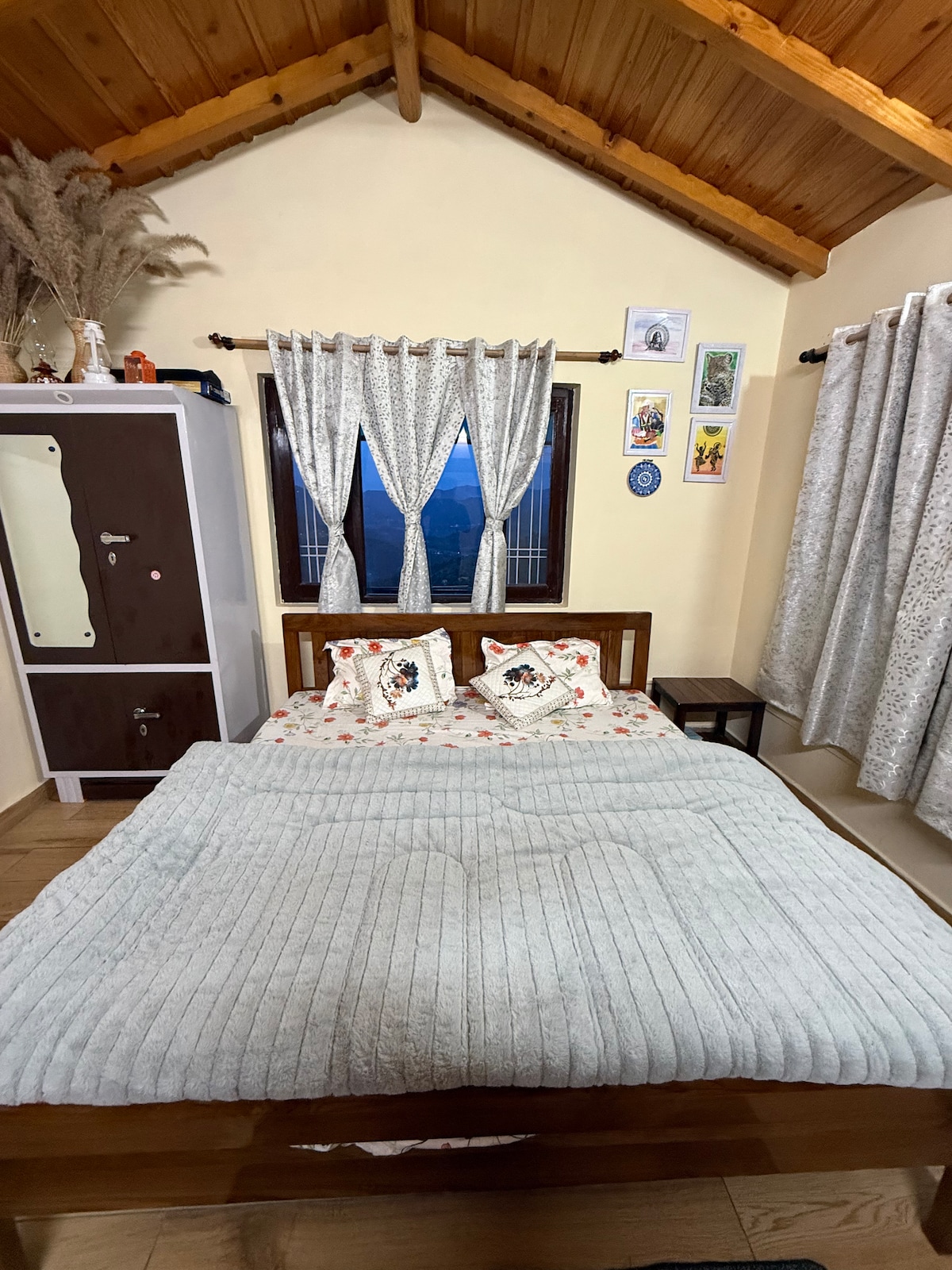You can have the whole valley and the mountains view from this place. If you are looking for a solitary place, away from all the noise of the city, this is it. It has a fully furnished kitchen Electric kettle, cooktop, microwave, refrigerator, chimney, RO water purifier. Cottage has two rooms, one bedroom Space with king size bed and one living room with sofa cum bed providing comfortable sleeping arrangements for 4 adults. Eagles nest has come up with a Brand new washroom with all amenities.