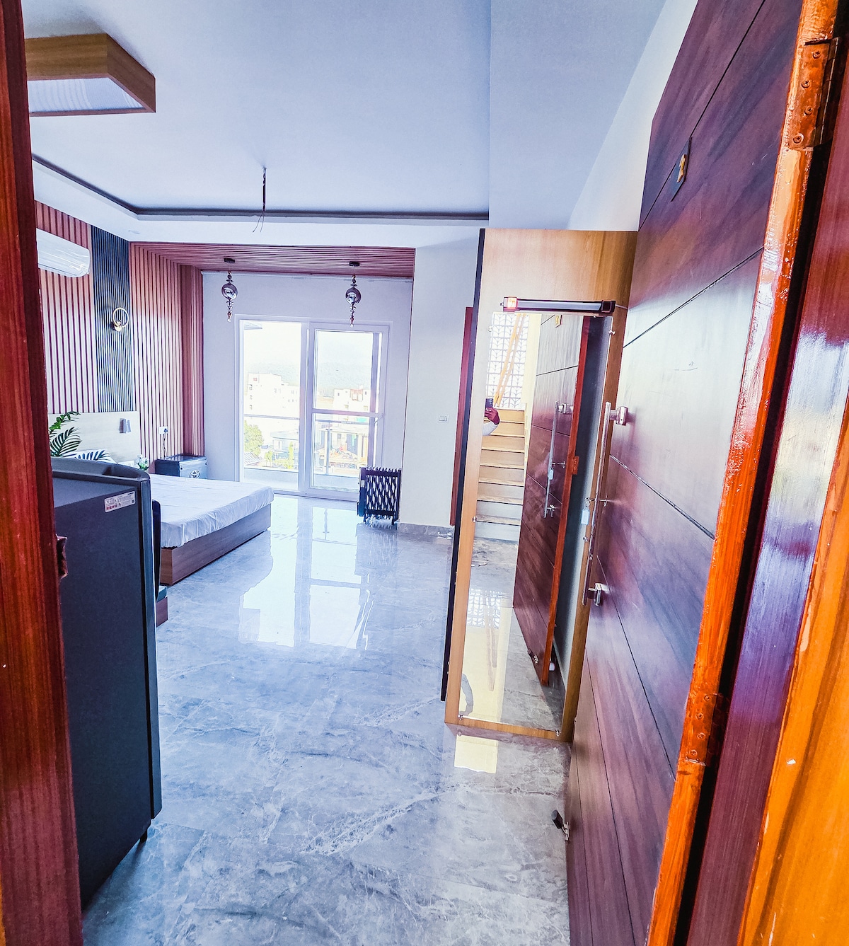Maitri (मैत्री) represents friendship, comfort, and a sense of ease. • Located in a calm yet central part of the city, this thoughtfully planned studio is bright, clean, and comfortable. • Large windows bring in natural light, and the simple, uncluttered design keeps the space relaxed. • Ideal for couples, solo travellers, or work stays, it offers privacy and quiet without feeling cut off. Maitri is meant for slowing down, settling in, and enjoying a peaceful stay in the city.