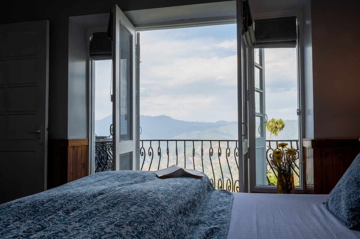 A hand-built mountain home at 2,400m — where the road ends and the Himalayas fill every window. Architect-designed villa with glass walls, wooden interiors, and snow-capped peaks from your bed. Every beam carried up by hand or mule — built the old mountain way. Reached via a 25–30 min uphill trek from the parking point — a proper mountain trail, not a flat walk. Plan accordingly if travelling with seniors or young children. Horses available on request.