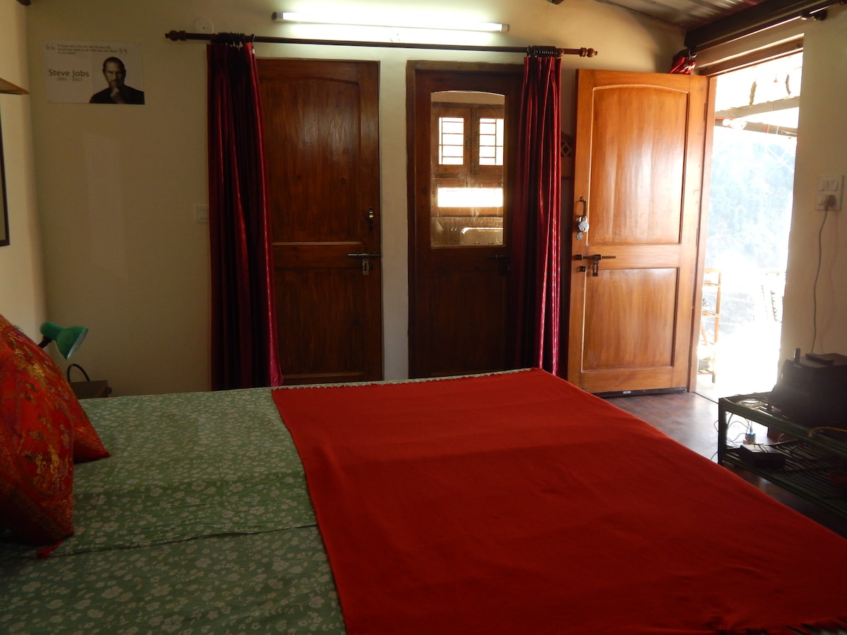 "Hustlers Den (Stone Cottage)" located in Landour is a mix of stone, wood & glass combination that gives you the best panoramic view of the mountains/forest/DDun. The Stone Cottage is located right next to the Main Cottage but it’s totally independent and private. Sister's bazaar is 35min walk...or 10min drive Char Dukan is 40 min walk..or 8mins drive.. Clock Tower is 30 min walk..or 15mins Drive Mall Road is 40 min walk or Jabarkhet Nature Reserve 10 min walk or 3 min drive (1.2km)