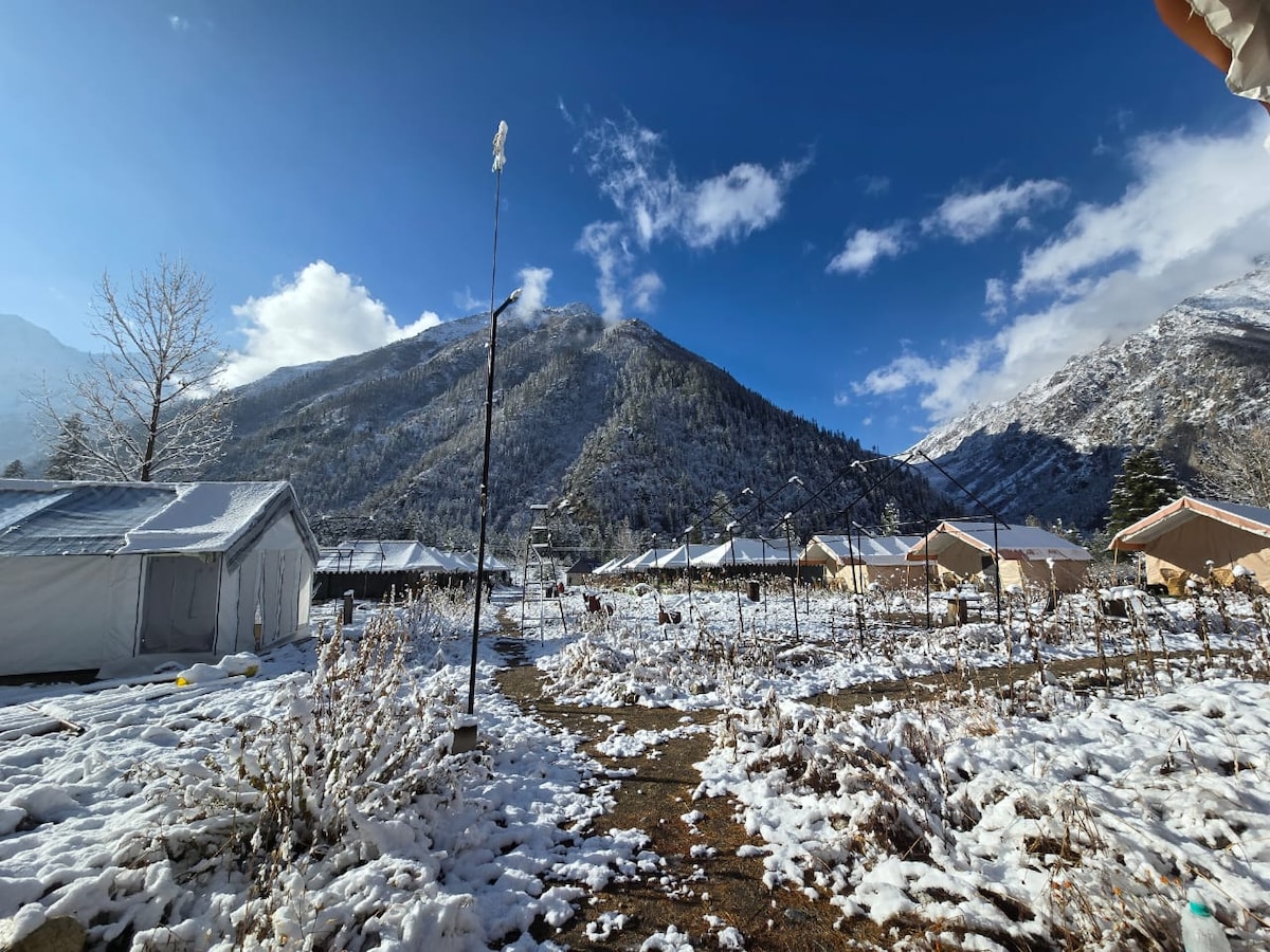Nestled in the serene valleys of the Himalayas near Kedarnath, our campsite resort offers a perfect blend of nature, comfort, and spiritual peace. Guests can enjoy comfortable tents, warm hospitality, and stunning views of snow-covered peaks. After your Kedarnath trek, relax by the campfire, enjoy traditional meals, and breathe in the pure mountain air. Whether you are a pilgrim or a traveler seeking adventure, our campsite provides a memorable Himalayan stay.