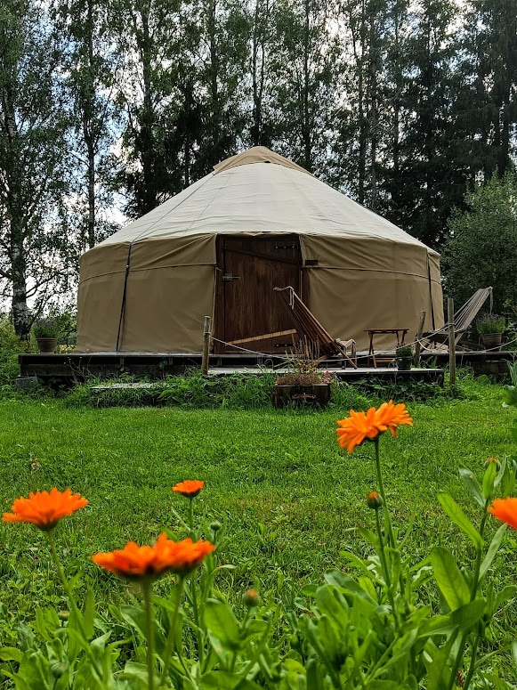 Tunnelmallinen ja mukava jurtta, on täydellinen irtiotto arjesta, luonnon helmaan. Tilava, käsintehty jurtta on sisustettu viihtyisäksi ja halutessasi pääset myös jurttasaunaan rentoutumaan (ei lisämaksua). Pesupaikka sijaitsee kriikunapuun alla, kauniisti pajuaidoilla suojattuna. Majoitusjurtassa on puilla lämpenevä kamiina jolla voit lämmittää jurttaa ja keittää vaikka tee- tai kahvivettä. Aamulla tuomme aamiaisen jurtalle. "Glampingiä parhaimmillaan!"