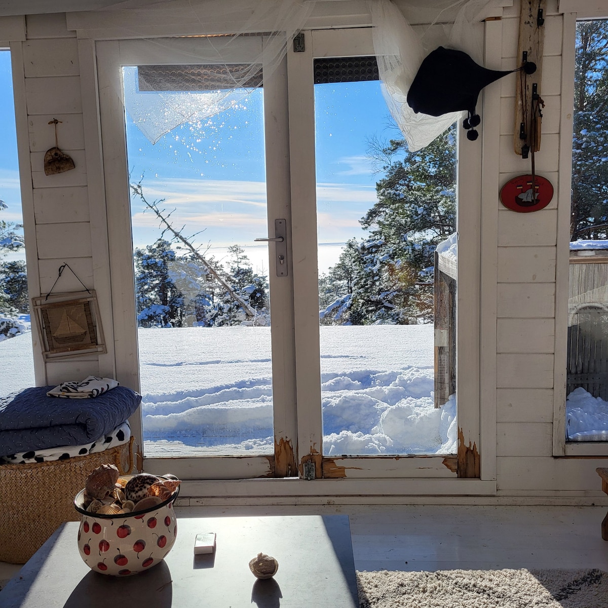 The seaside cottage is by the sea. The view is really nice as it looks at the sea all the way to the horizon. You can go for nice walks or swimming. Perhaps in the winter on a walk on the ice. Perfect spot if you have your fishing gear with you, or a canoe or SUP-board. The cottage works well for family, couples or just traveling alone. The place is also fine with small pets that do not shed. A sauna and reasonable amount of wood free of charge to warm up the sauna and smoker +fireplace outside.