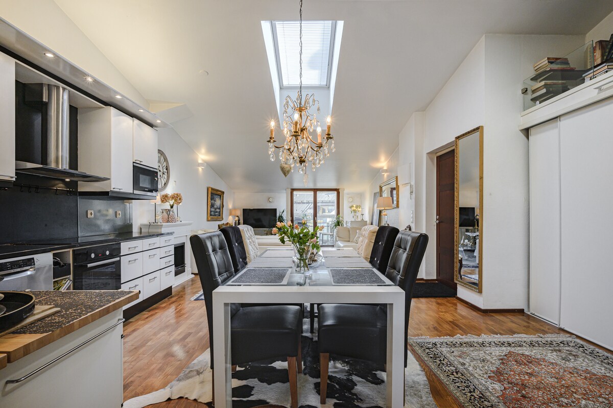 Architect-designed 132 m² loft on 6th floor featured in magazines and on TV. Open 90 m² living space with a 15 m² west-facing terrace and an east-facing balcony offering stunning rooftop views. Includes a dining table for 20, 86" TV, piano, and workspace. Spa-style bathroom with sauna and whirlpool opens to the loft. Sleeps up to 6: double bed in the loft, kids’ room with double bed and balcony bed, plus a sofa bed. Stylish, spacious, and unique—finalist in Finland’s Most Beautiful Home 2013.
