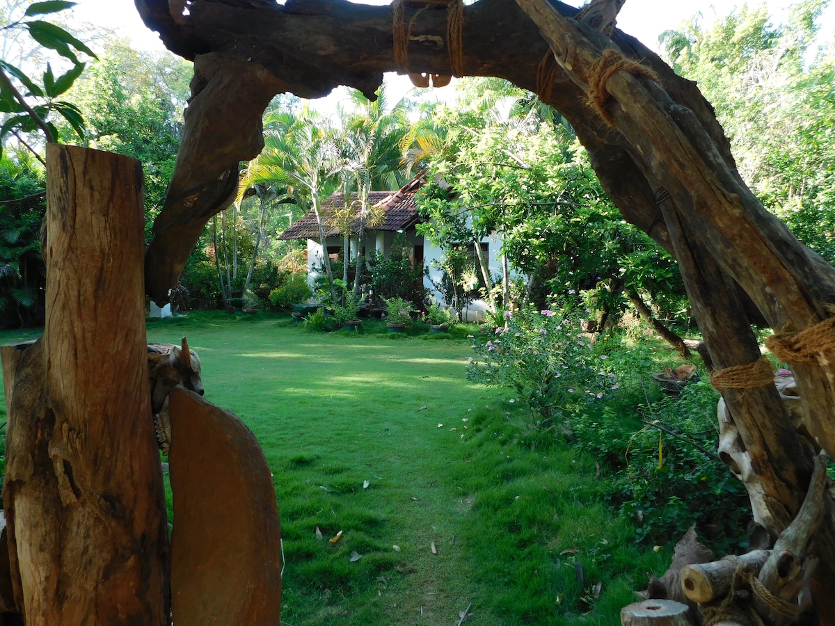 the accomadations situated midle of suger cane field , by a river. You are in a isolated area and very less human,almost zero .( im living on property) in 2 Km shops,supermarket ,restaurants. Only two cottages in huge land ,there are coconut trees( palms ). 🚗taxi can be arranged 🚙free parking 🙉🦡🌳 safari facilities 🧼laundry 🍺🥗outdoor dinning 🍛Cooking classes available 🔥 fire place Foods available 15 min to national park. 20 min to elephant transit home. 30 min to the city .